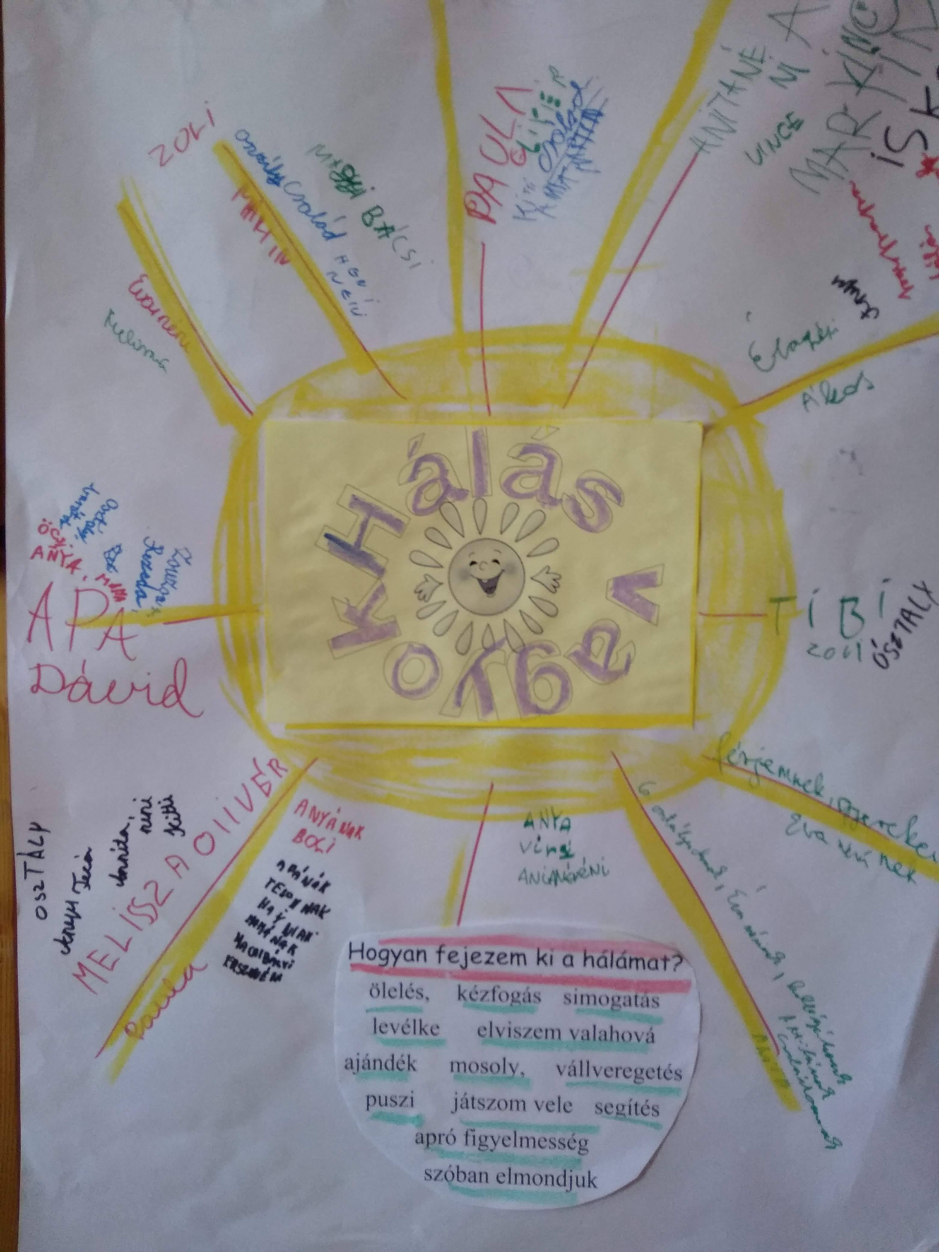 A boldogságórán plakátot készítettünk, és hálaüzeneteket írtunk. Mindenki nagyon örült, amikor megkapta. Hálát mondani csodálatos dolog! Kár, hogy nem gyakoroljuk sokat az életben!