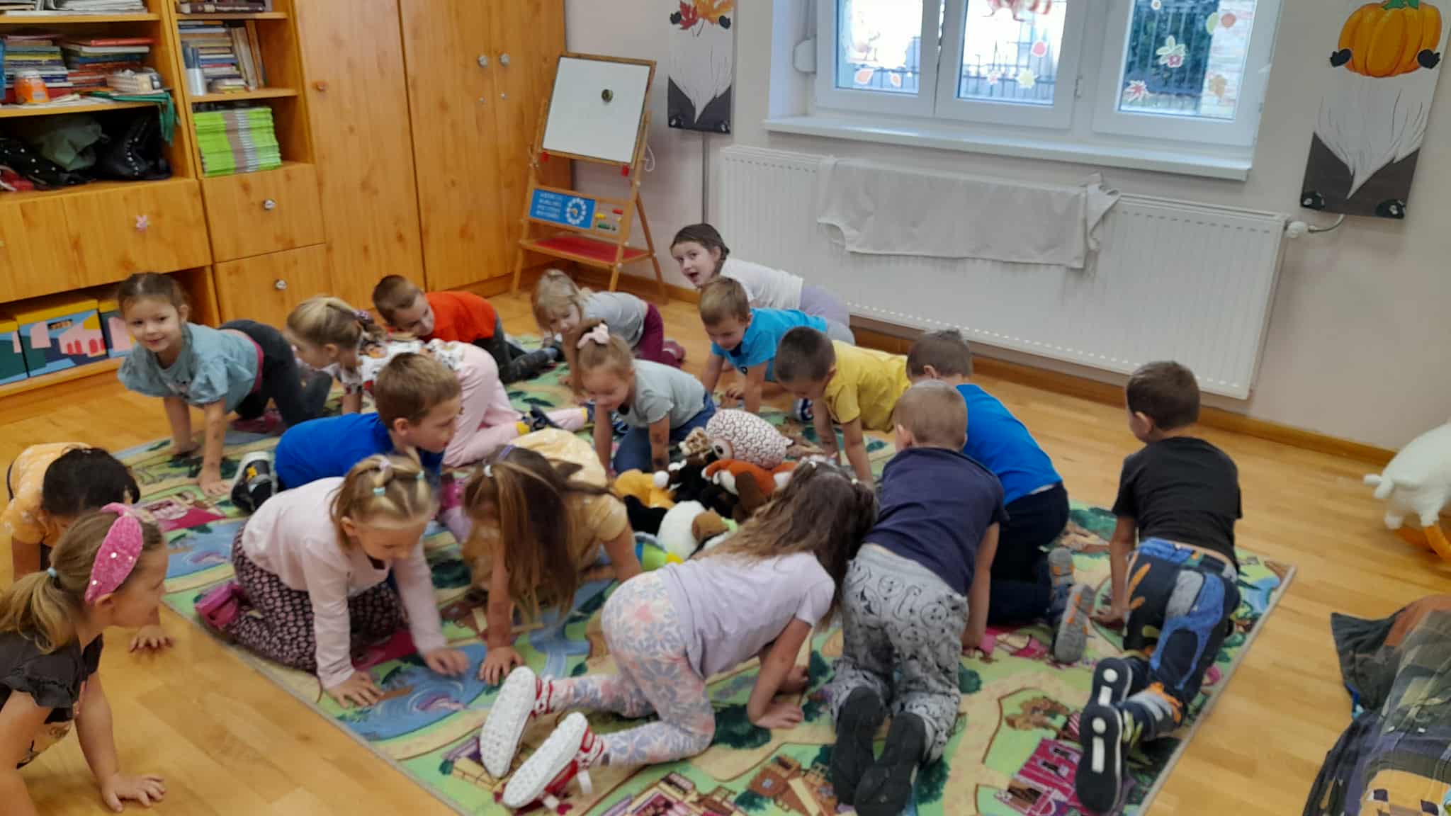 Ráhangolódásképpen beszélgetéssel kezdtük. Mindenki elhozhatta a kedvenc állatát plüss formájában az óvodába, melyeket egyesével bemutattak nekünk. Mindenki elmondta, hogy milyen állata van otthon, hogyan gondoskodik róla és megválaszolták azt a kérdést is, hogy miért szeretjük az állatokat.