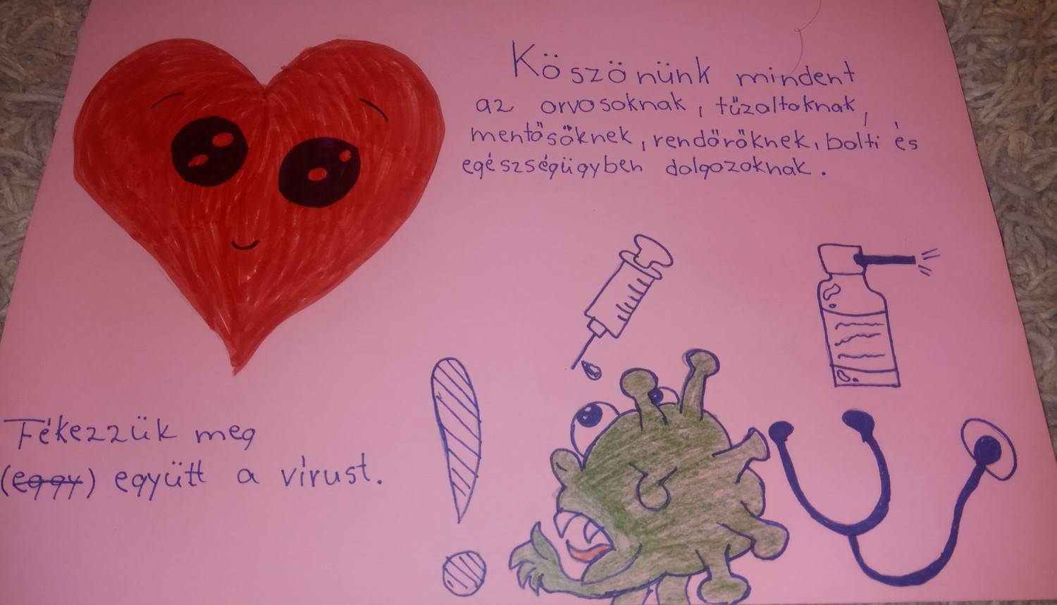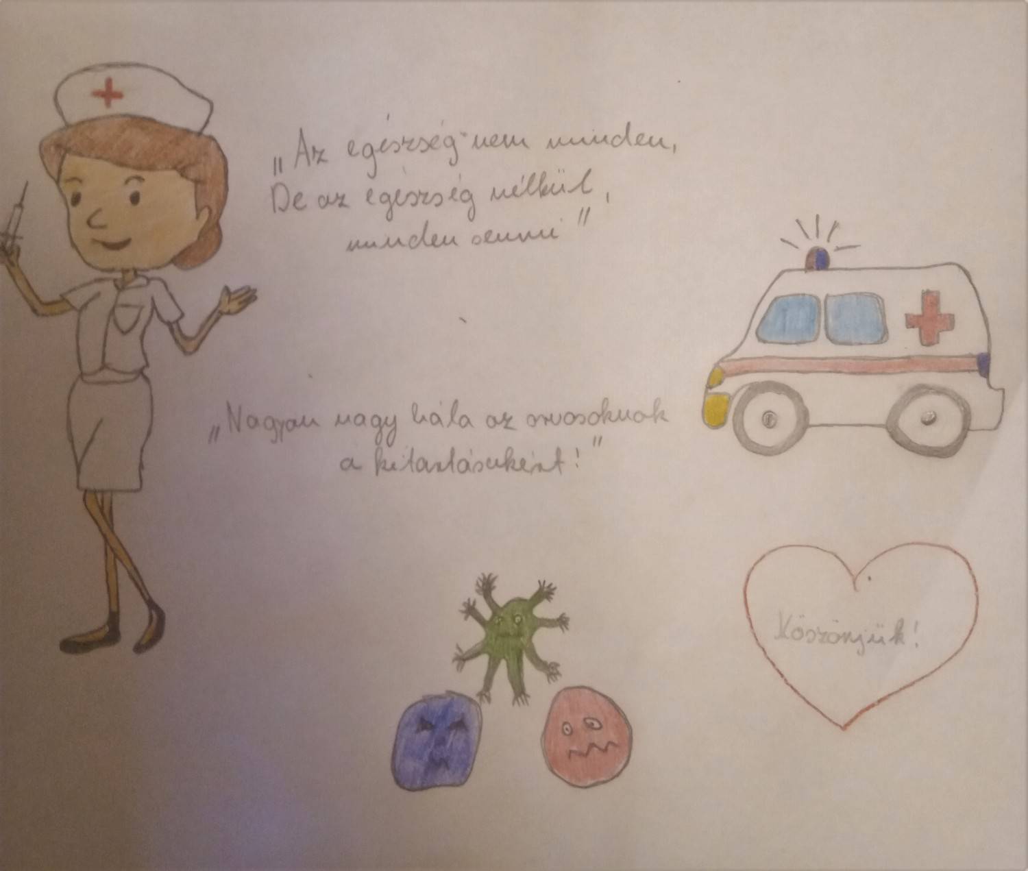 A rajz a karantén alatt készült, hála az orvosoknak és az egészségügyben dolgozóknak.