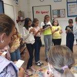 Immár negyedik alkalommal érkeztünk el a boldogságfokozó hála gyakorlásához, mégis új és új dolgok, események, emlékek kerültek elő, amiért hálásak lehetünk. Megfogalmaztuk, le is írtuk, hogy miért és kinek lehetünk hálásak, most azonban azt kértem a gyerekektől, hogy tegyék a listát a tolltartójukba, és ha szomorúak, mérgesek, rosszul érzik magukat, nézzék meg ezeket a listákat. A „Hála égbolt” készítésénél érdekes volt látni, ahogyan rájöttek, hogy minél több embernek hálásak, annál több csillagból álló csillagképet kell választaniuk.