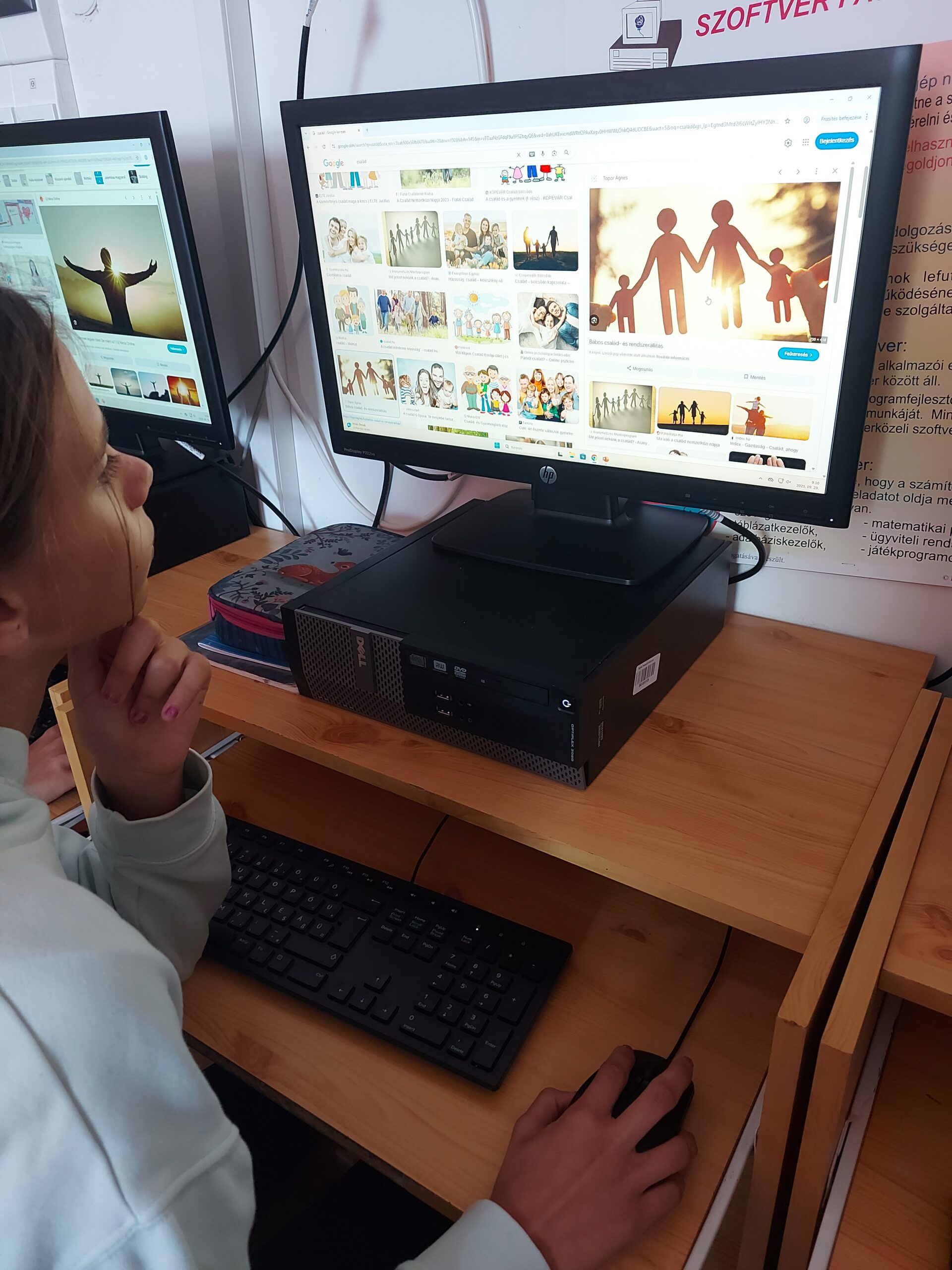 A hála gyakorlása témát digitális formában dolgoztuk fel. Felidéztük először, hogy tavaly miket fogalmaztak meg a tanulók a hálával kapcsolatban. Az interneten megkerestük, hogy milyen jelentései vannak a hála szónak, és ennek értelmében nekik mit jelent ma. Saját ötleteik alapján PowerPoint prezentációt készítettek, amelyeket bemutattak egymásnak is.