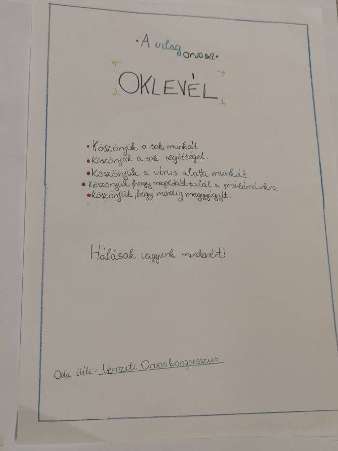„A világ orvosa” oklevelet a Nemzetközi Orvoskongresszus ítéli oda minden évben annak az orvosnak, aki valamilyen betegség gyógyításában úttörő munkát végzett.
