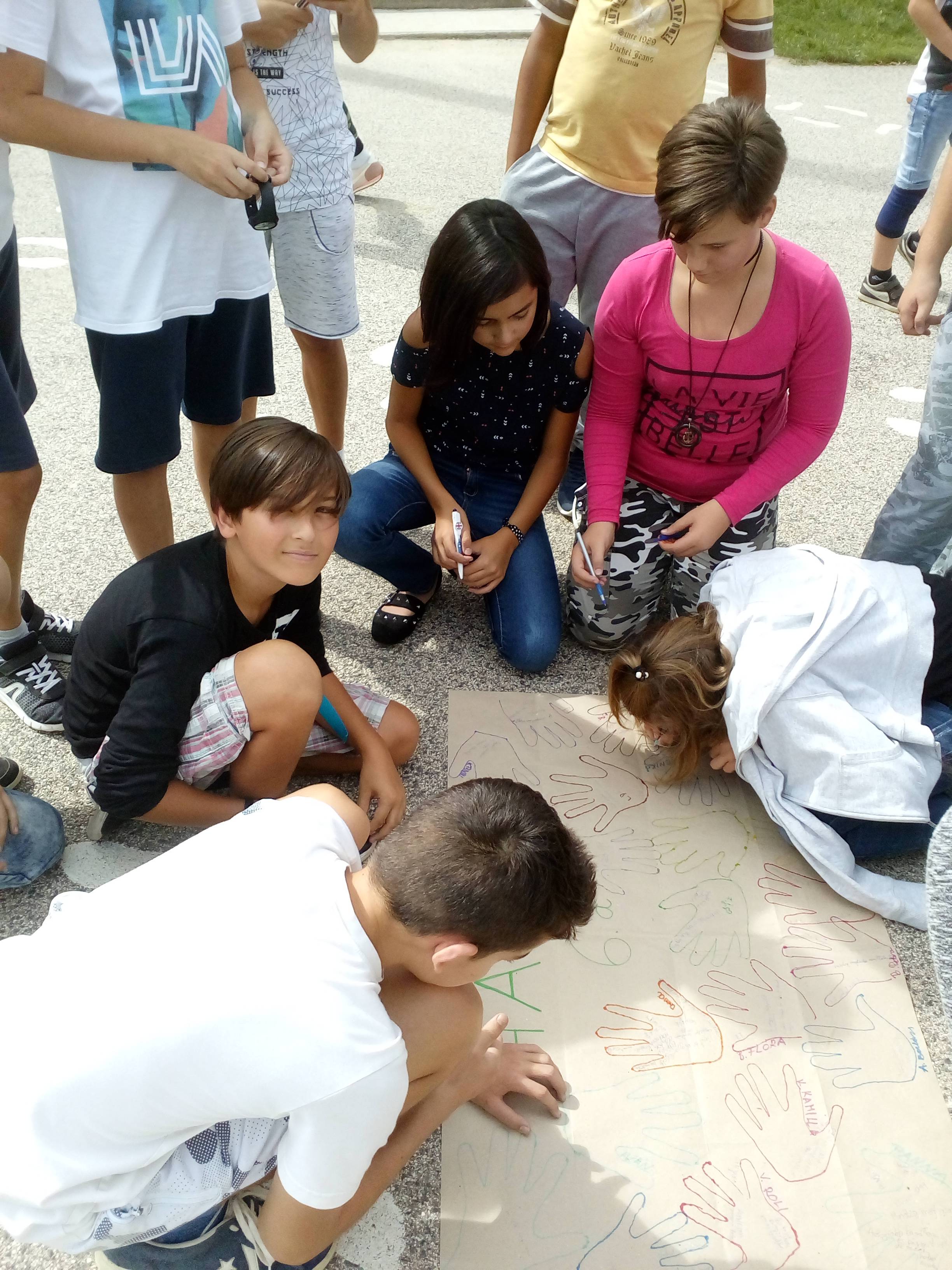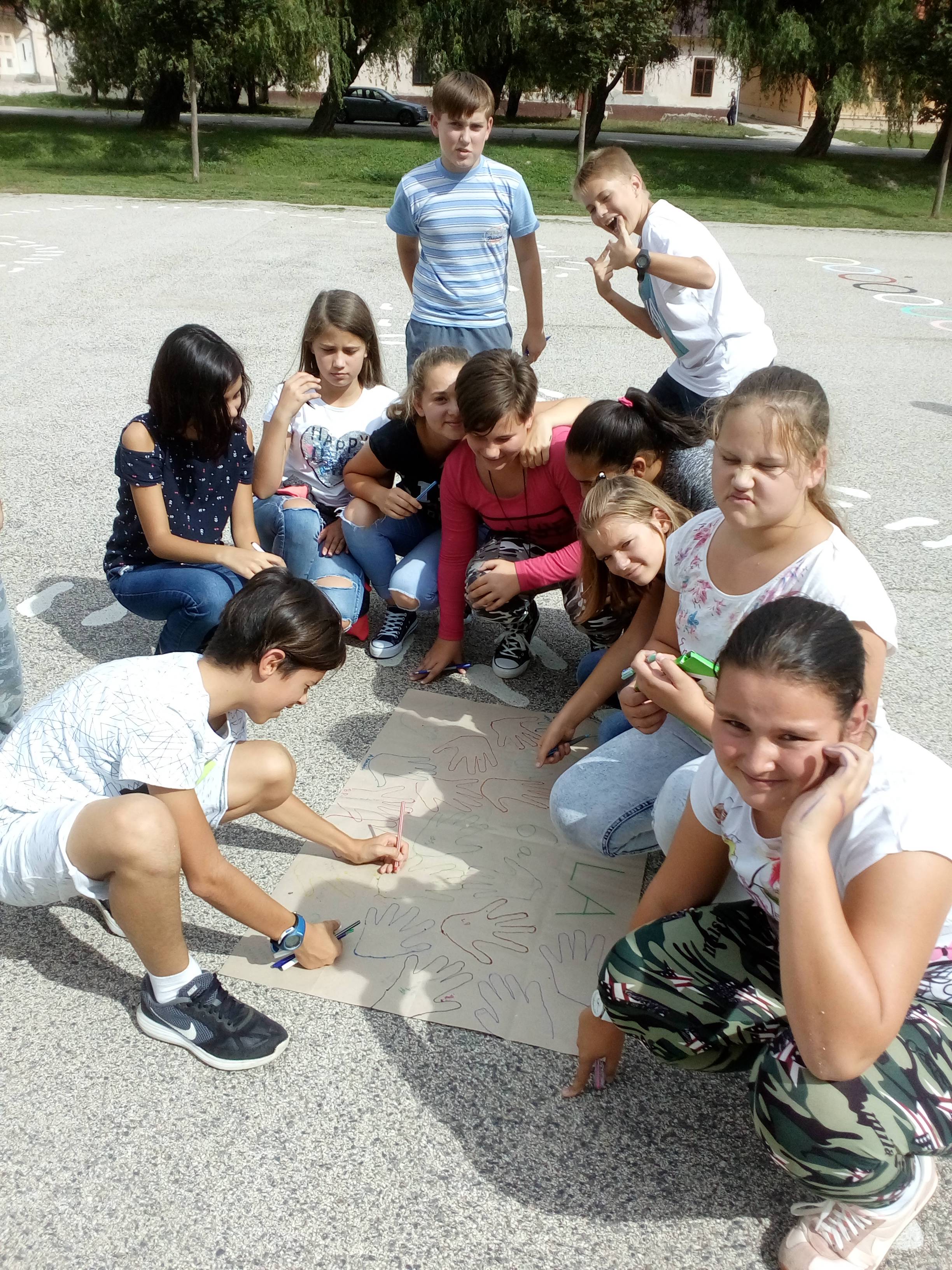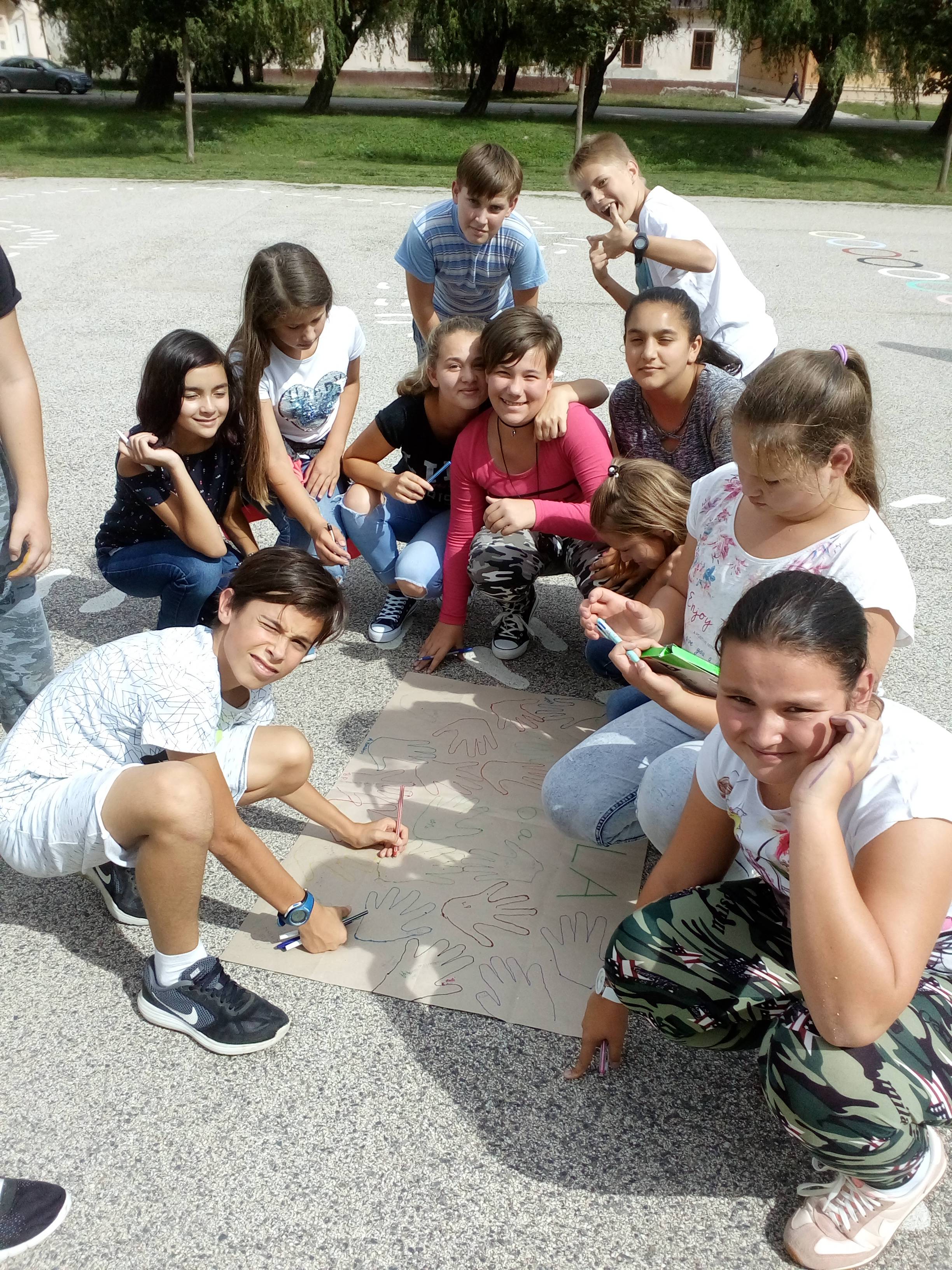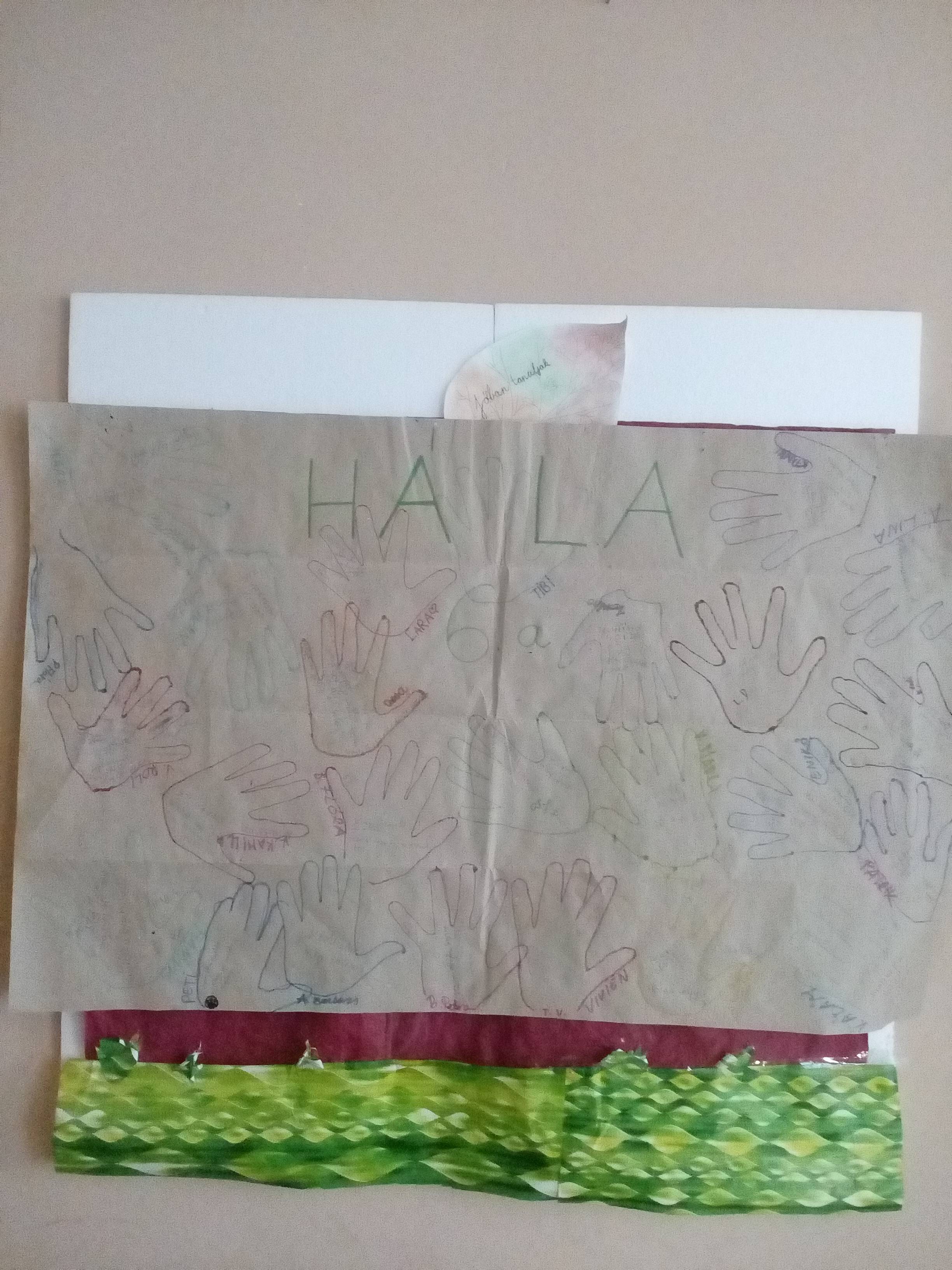 Elmondtuk, hogy az osztály minden egyes tagjának hálásak lehetünk valamely jó tulajdonságáért. Színes filccel mindenki körberajzolta a tenyerét és mellé írta a nevét. Ezután az osztálytársak egymás „tenyerébe” írták miért hálásak Neki.