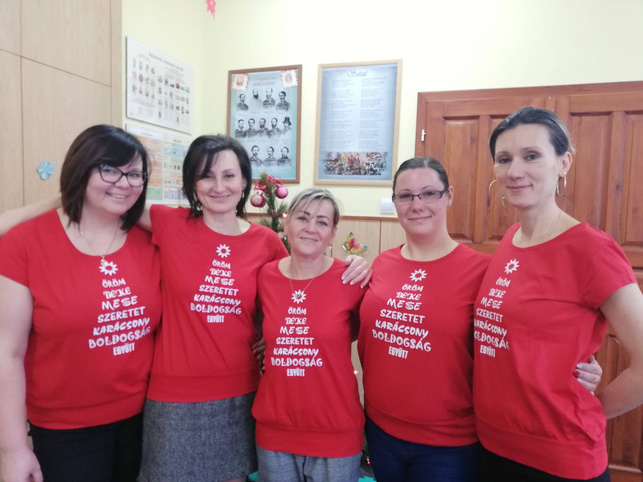 A feldat megbeszélése után a gyerekek az érdemrend készítése mellett döntöttek. Összedugták a fejüket és elkezdtek ötletelni azon, hogy is nézzen ki maga az érdemrend. Nem a megszokott kitűzőben, nyakba akasztható éremben gondolkoztak, hanem olyat szerettek volna, amit a hétköznapokban is hordani tud a díjazott. Színnek a pirosat választották, anyagának a puha pamutot, mert az fejezi ki legjobban a szeretetet és kellemes viselni. Nem jelekkel és jelképekkel, hanem szavakkal fejezték ki érzéseiket. Ezt az érdemrendet olyan valaki kaphatja, aki a kötelességén túl, a szabadidejét feláldozva odafigyel és segít másoknak. Mikor elkészültek, nem tudták eldönteni, ki kapja, ezért úgy határoztak, hogy első ízben egy csoporté lesz, azoké, akik iskolánkban és iskolánkért dolgoznak. Bennünket meghatott ez a gondolat, megvalósítottuk és íme elkészült …..a TRIKÓ.