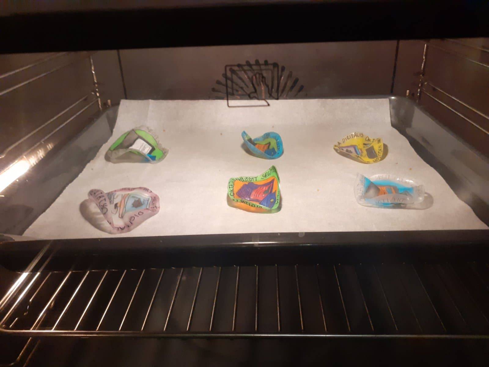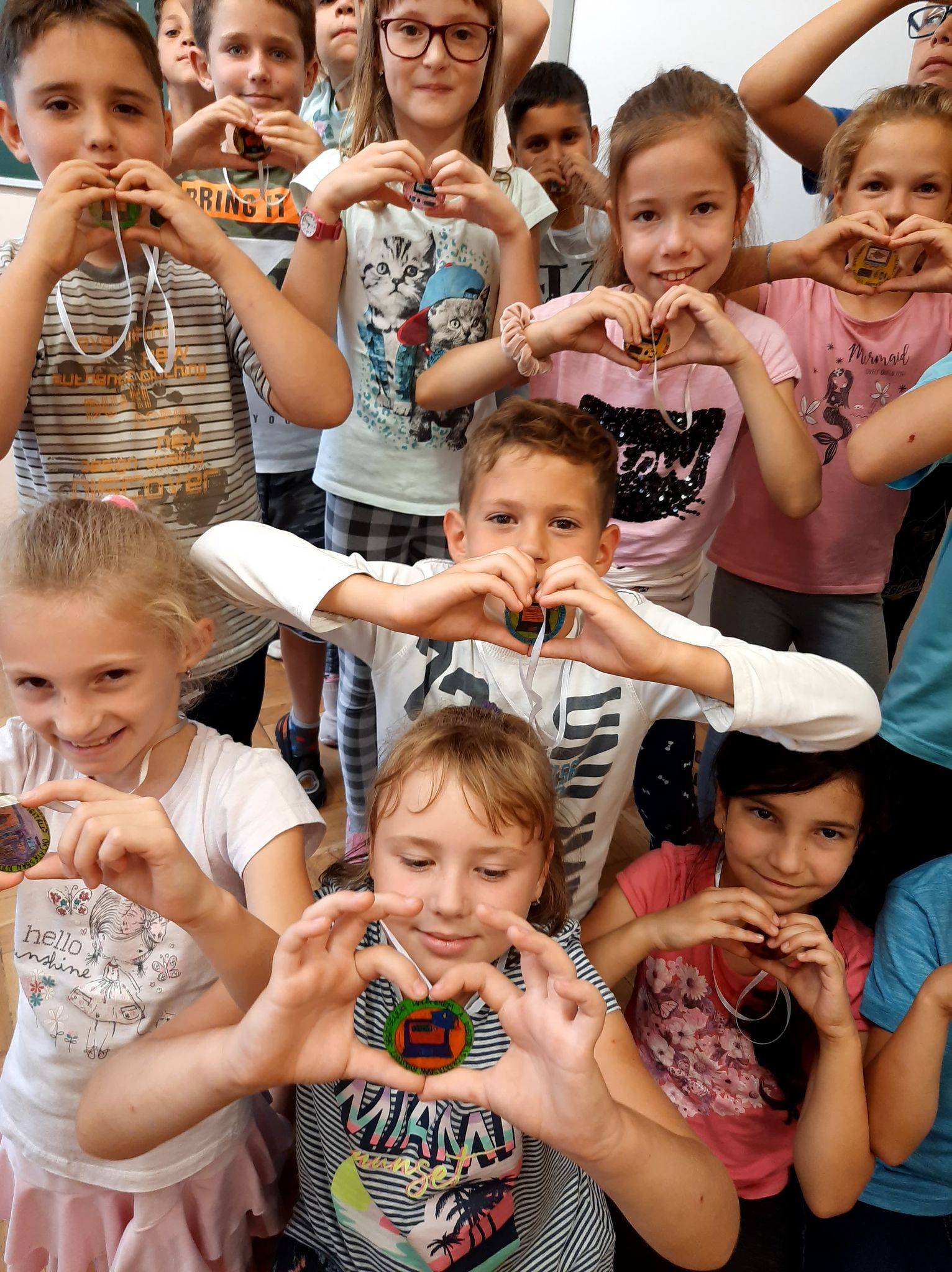 Hálakuponokat és HÁLA ÉRMET is készítettünk szüleinknek, amitől nagyon boldogok lettek. Az érmeket zsugorfóliára rajzoltuk meg, majd közösen figyeltük, ahogy a sütőben összezsugorodnak. Végül egy szép selyem szalagra fűztük fel őket. Az elkészült hála érmeket a „DILITÁLIS OKTATÁSBAN” nyújtott segítségért adták át a gyerekek. Jó volt látni a meghatódott szülői arcokat, a könnyes szemeket és a gyerekek csillogó tekintetét.