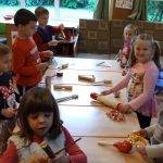 Megünnepelhettük a „Népmese napját „. Feldolgoztuk „Az aranyszőrű bárány ” című mesét, s ugyanúgy mint általában a mesékben szokott lenni, a gyerekeknek is ki kellet állniuk a hétpróbát. Diót kellett átrakniuk két ujj segítségével egyik tálkából a másikba, megtanultuk a hangszereket megszólaltatni, saját népi hangszert készítettük dió segítségével, majd mindenki saját elképzelése szerint lerajzolhatta a mese szereplőjét, az aranyszőrű bárányt.