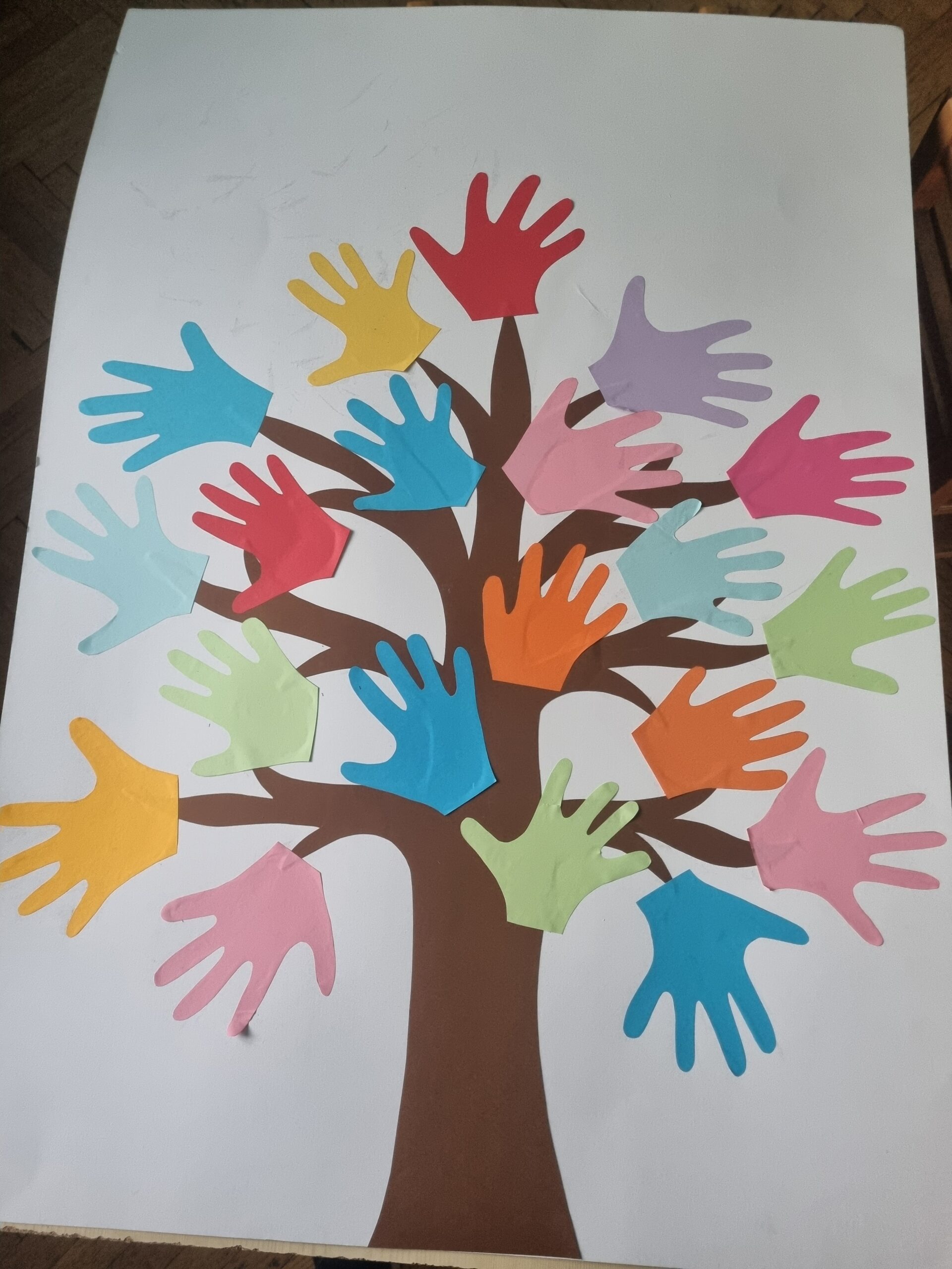 A gyerekekkel a hála fogalmával ismerkedtünk. Elmesélték ők miért hálásak. Készítettünk hála fát, valamint hála virágot, amit a saját csoport társainak adhattak át a gyerekek és elmondhatták, hogy miért hálásak, miért annak a gyermektársaiknak adják át.