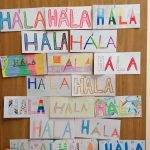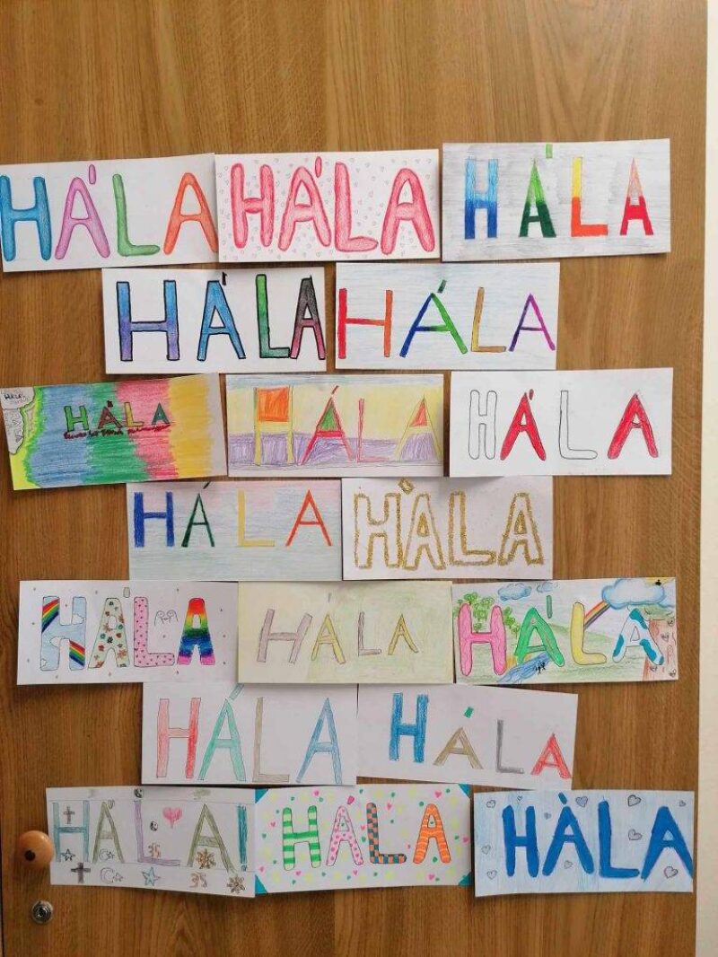 A hála feliratból „téglánként” falat építettünk a tantermünkbe.