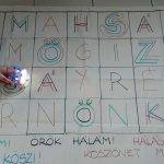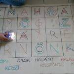 A hála szavait programoztuk be és gyűjtöttük fel betűnként a betűhálóról a robotkaticákkal.