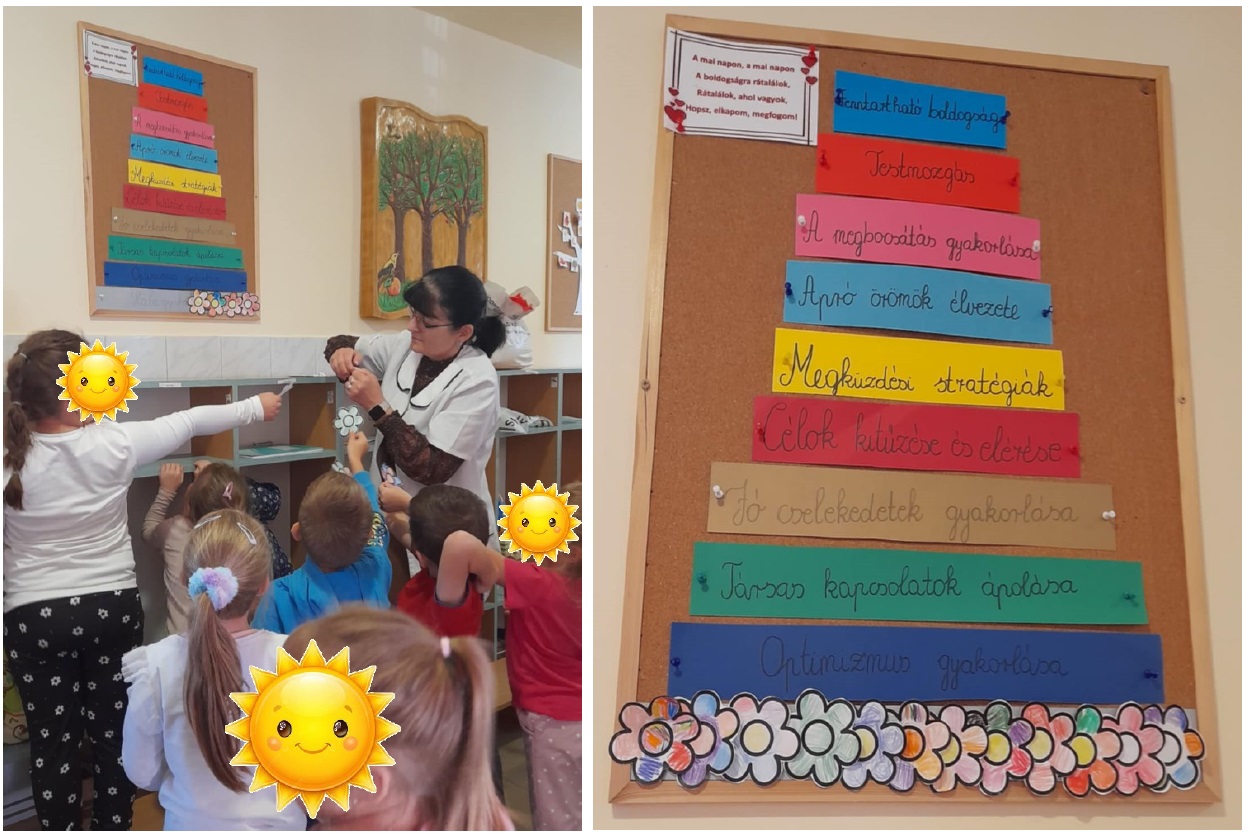 A közös tánc oldott és felszabadult légkörben zárta a foglalkozást. A tevékenység komplexitása több területet érintett: érzelmi, értelmi, mozgásos és szociális kompetenciákat. A gyermekek közötti kapcsolatok erősödtek a közös élmények révén. A hála gyakorlása hozzájárult a pozitív érzelmi attitűdök kialakulásához. A foglalkozás illeszkedett az óvoda pedagógiai programjához és a Boldogságórák célkitűzéseihez. A családok bevonására irányuló feladatok tovább erősítették az óvoda és a szülők együttműködését.