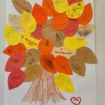 egy őszi falevelet, amelyre rá rajzolta azt amiért hálát érez. A