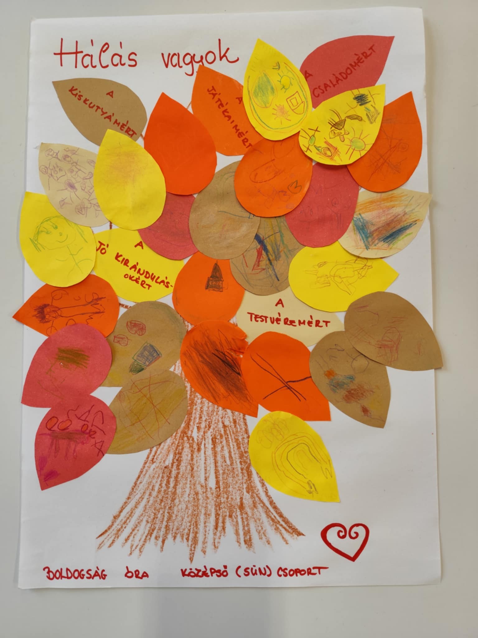 soroltunk fel olyan dolgokat, amiért hálát érezhetünk. Ezt követően a tevékenységet a Hála fa