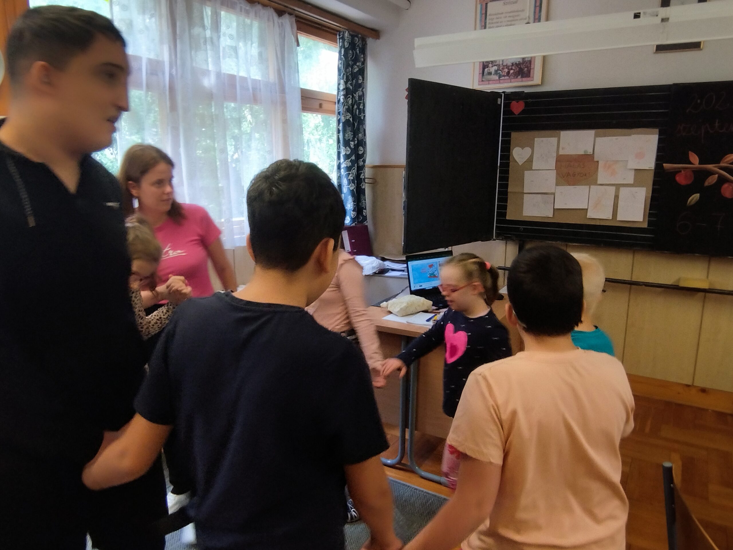 A foglalkozás zárásaként közösen táncoltunk Bagdi Bella: Szép nap ölelj most át engem című számára.