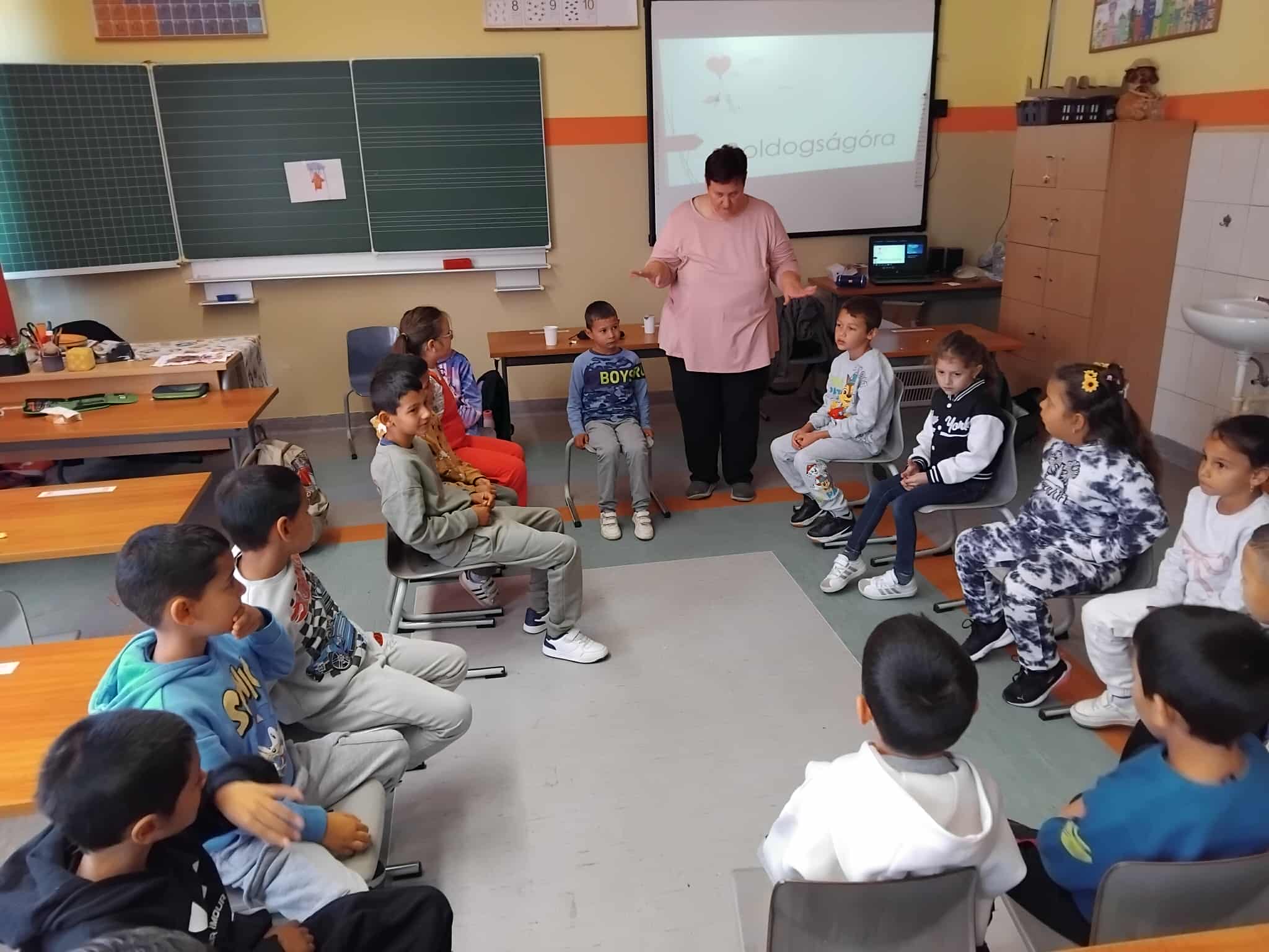 fáradtságot.Ami különleges volt még számomra, hogy a pedaszisztens is végig aktívan részt vett az órán.Hálás vagyok,hogy végre Boldog Iskola lettünk.