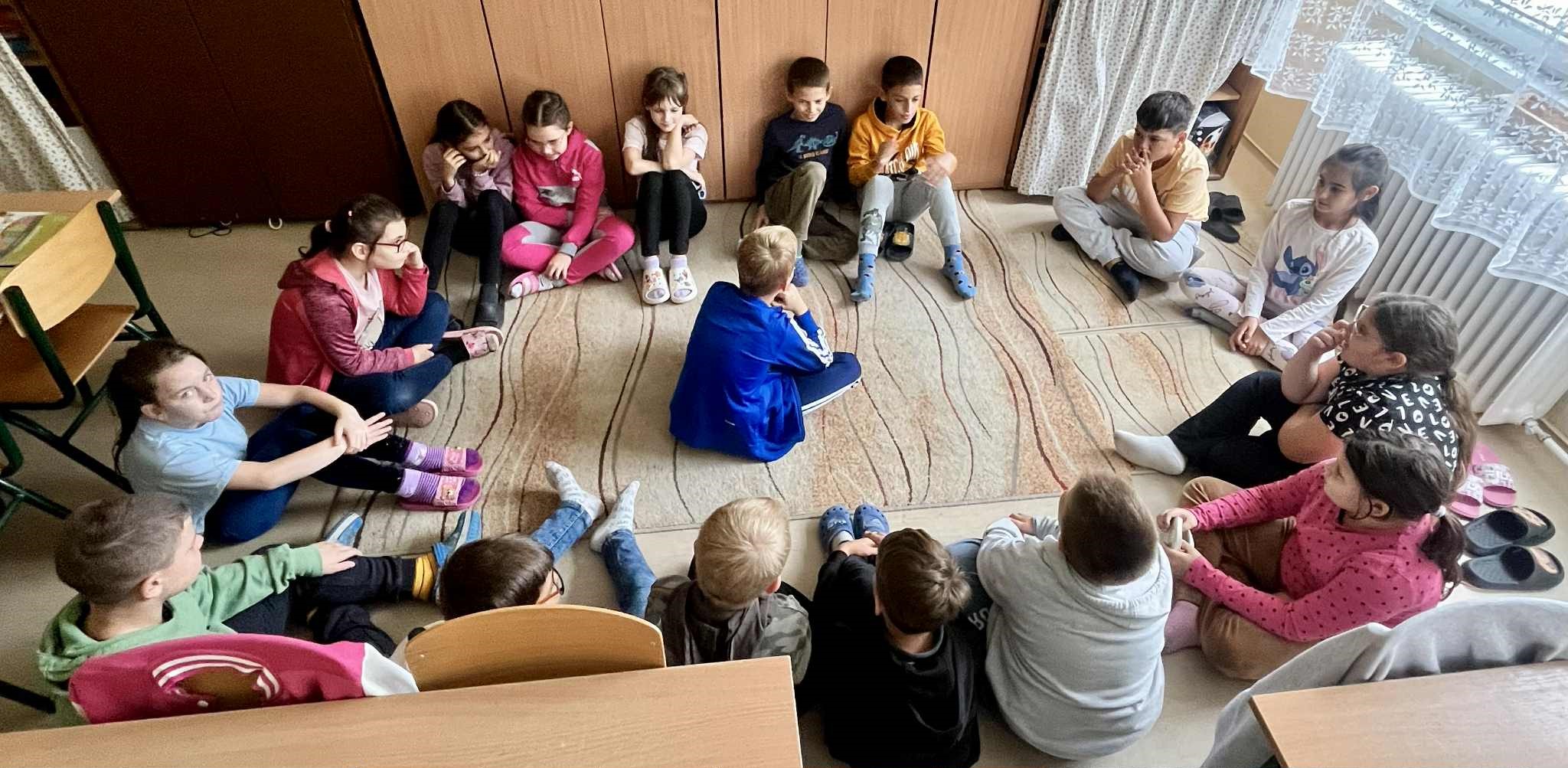A témát vizuális kultúra órán folytattuk tovább. Az óra legelső része beszélgetéssel telt, arról, hogy kinek mi volt az első gondolata a hála szóról. Ezután egy játékot játszottunk, a szőnyegen körbe ülve. Egy gyermek a körön belül ült, és a többiek akik kívül voltak elmondhatták, hogy ki miért hálás neki. Rendkívül tetszett a gyerekeknek ez a játék, mert mindenkinek nagyon jól esett a sok kedves, és jó szó.