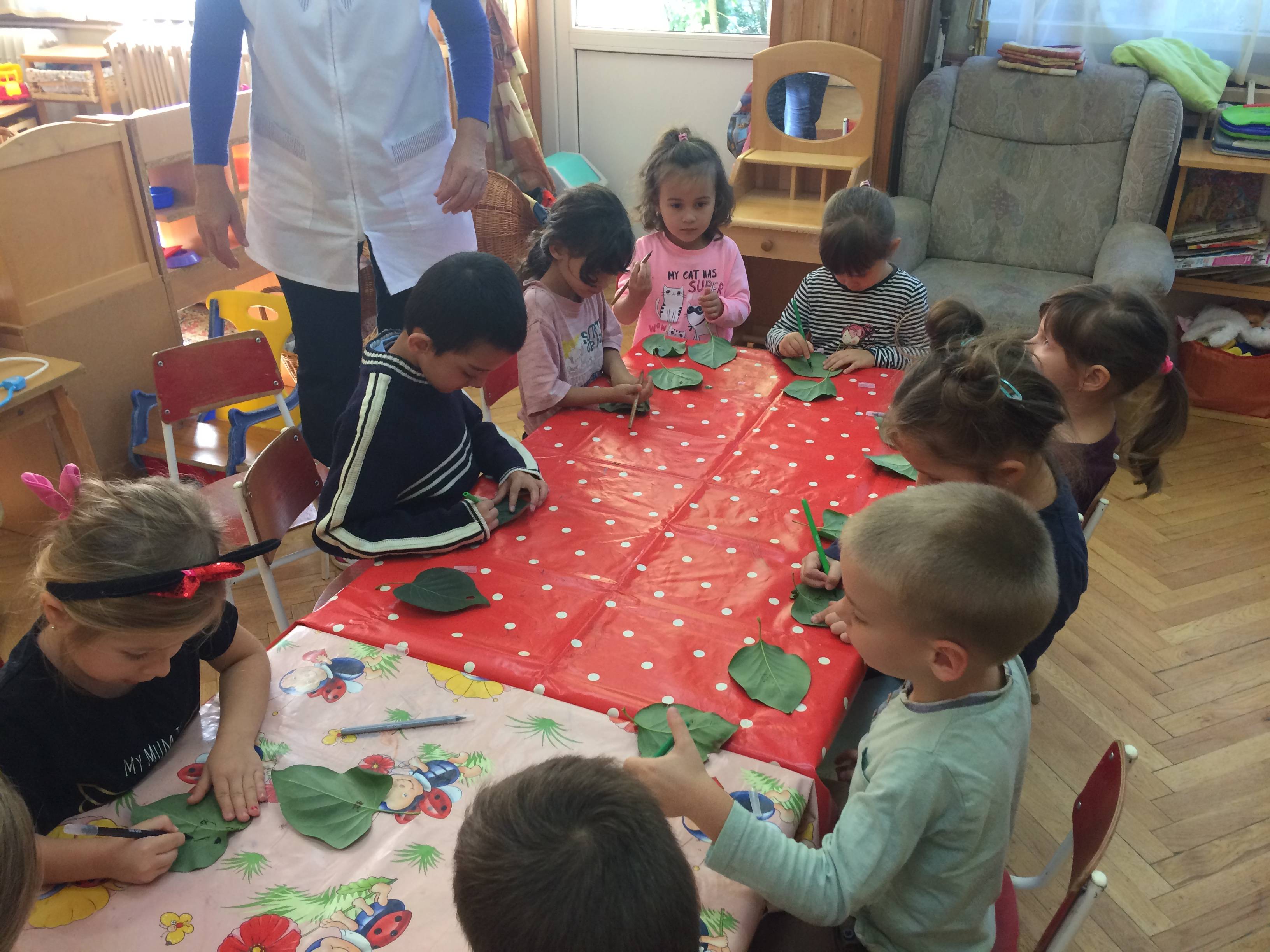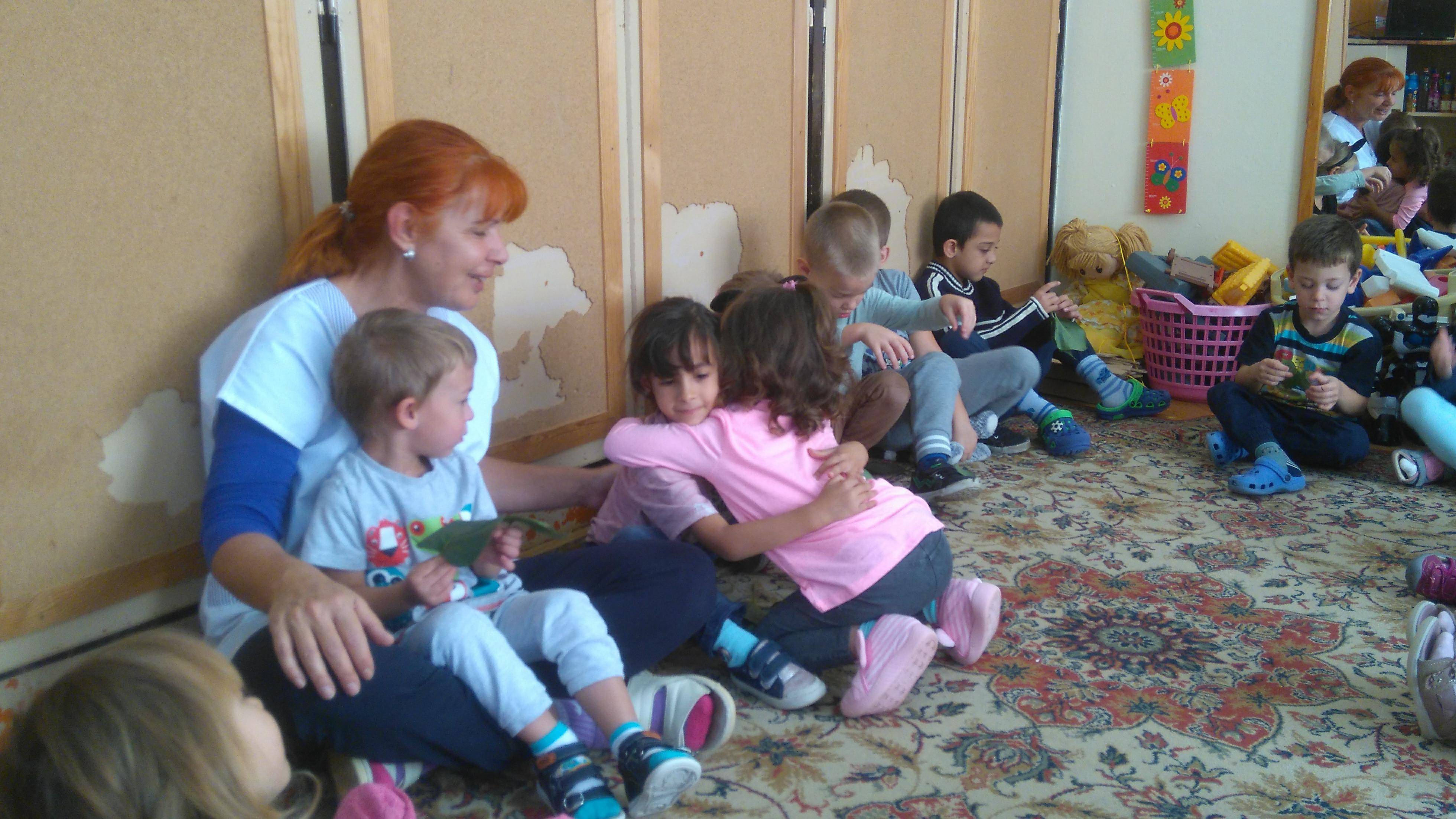 Az idei tanévben csatlakoztunk a programhoz. Osztatlan csoportunkba 5 nagycsoportos, 5 középsős és 7 kiscsoportos korú gyermek jár, ebből 4-en most szeptemberben kezdték az ismerkedést az óvodával. Ebben a hónapban 1 foglalkozást tartottam a témában. Beszélgető körünk keretében zajlott a foglalkozás. Meghallgattuk a hónap dalát, ami a nagyobbaknak nem volt ismeretlen, mivel néhány éve szívesen használjuk a cd-t a különböző tevékenységeinkhez kapcsoltan,így többen énekelték is a dalt. Ezután beszélgettünk a hála fogalmáról, miért érezhetünk hálát, ki iránt érezhetünk hálát, milyen érzés a hála… Majd a közösen gyűjtött levelekből mindenki készített magának 2 hála levélkét (mosolygós szemet és szájat rajzoltunk rá). Az egyiket egy ölelés kíséretében átadták a csoportban kiválasztott társuknak, a másikat hazavitték . A kisebbek inkább csak az ölelést választották, a nagyobbak azonban szívesen és szépen meg is fogalmazták az átadásnál, hogy miért az adott társukat választották. A következő napi beszélgető körben mindenki elmesélte, hogyan adta át édesanyjának vagy édesapjának otthon a hála levélkét.