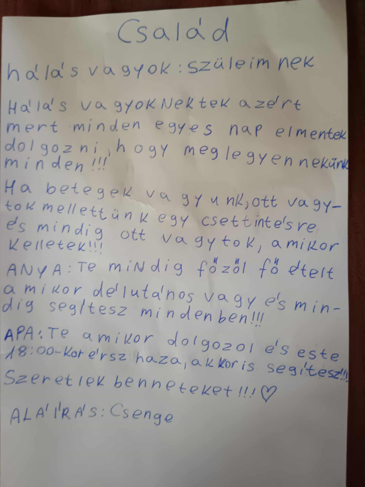 Szeptember hónapban a Hála a téma. A Boldogságórát egy relaxációs feladat elvégzése után a „Jól érzem magam”dal eléneklésével indítottuk. Ezután felolvastam az Egy pohár tej c. történetet, majd megbeszéltük az érzéseinket ezzel kapcsolatban. A gyerekek elmondták a közelmúlt eseményei alapján, hogy kinek és miért lehetnek hálásak, majd egy hálalevél megírása volt a feladatuk. Szabadon választhattak, hogy kinek szeretnék ezt szánni. Voltak, akik lelkesen kezdtek dolgozni, de voltak, akiket bíztatni kellett, valamint segíteni, hogy kinek és miért lehetne ezt a levelet megírni. A maguk módján-hosszabban, rövidebben, esetleg helyesírási hibákkal-meg is oldották a feladatot. A kérésem az volt, hogy az elkészült leveleket olvassák is fel annak a személynek, akinek íródott. A következő osztályfőnöki óránkon pedig elmondták a tanulók, hogy mi történt, ill. milyen érzések kerültek felszínre a hálalevél felolvasása során. Sok szem nem maradt szárazon! A gyerekek arról is beszámoltak, hogy nekik is örömet okozott, hogy megtapasztalták, milyen jólesett a levelük a címzettnek, és mennyi örömöt tudtak ezzel okozni.