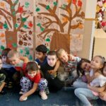 Szeptemberben újra megkezdtük a boldogság programot a Katica csoportban. A boldogságfokozó hála gyakorlása volt a téma. Nagy szeretettel fogadtuk új kiscsoportos gyermekeinket és hálát adtunk, hogy újra együtt lehetünk. Bagdy Emőke: „napimádás” relaxációs gyakorlatával kezdtünk. Többször megismételtük a gyakorlatot, mert nagyon tetszett a gyermekeknek, mivel a fújásnak hallható volt a hangja. Beszélgettünk a gyerekekkel arról, hogy szerintük mi a hála; miért/kiért lehetünk hálásak, és arról, hogy milyen jó érzés kapni és adni is a kedves szavakat. Ezt követően egy mókus kesztyűbáb segítségével elmeséltem nekik „A kis mókus hálás napja” c. mesét. A gyermekek nagy figyelemmel hallgatták a mesét és az azt követő kérdésekre nagyon ügyesen válaszoltak. Egy kisfiú, aki középső csoportos, a saját szavaival elmesélte a mesét, ami minden gyermeknek nagyon tetszett. Ezt követően két hálafát készítettünk, mivel egy papírhoz nem sok gyermek fért oda. A gyerekek nagyon élvezték a közös munkát, nagy örömmel festették tenyérnyomattal a színes leveleket. A közös hálafa készítése után kiszínezték a gyermekek a hálát jelző virágot, majd a gyermekek rárajzolták annak a társuknak a jelét, akinek oda adták. Köralakítást követően a gyerekek egy labdát adtak társuknak és akinél a labda volt, elmondta, hogy miért hálás. A tevékenységet Bagdi Bella: Boldog vagyok c. dalának meghallgatásával zártuk. A gyerekek önfeledten táncoltak, ugráltak, megmutatták mennyire boldogok. A foglalkozás középpontjában a hála érzésének megélése és kifejezése állt, amely az egész tevékenységet áthatotta. A beszélgetőkör, a dalok megalapozták a pozitív érzelmi légkört, a gyerekek felszabadultan, mosolygósan vettek részt, örömmel kapcsolódtak be a tevékenységekbe.