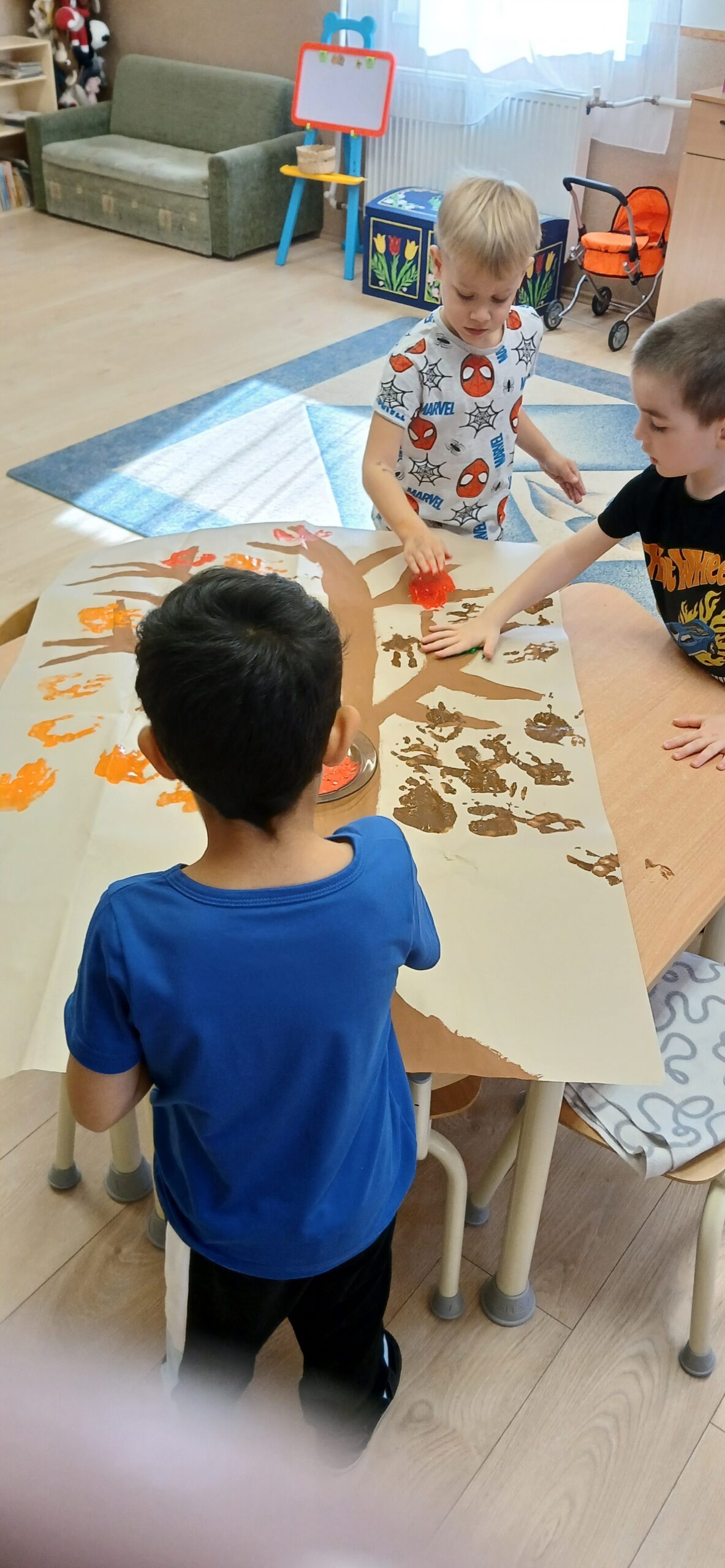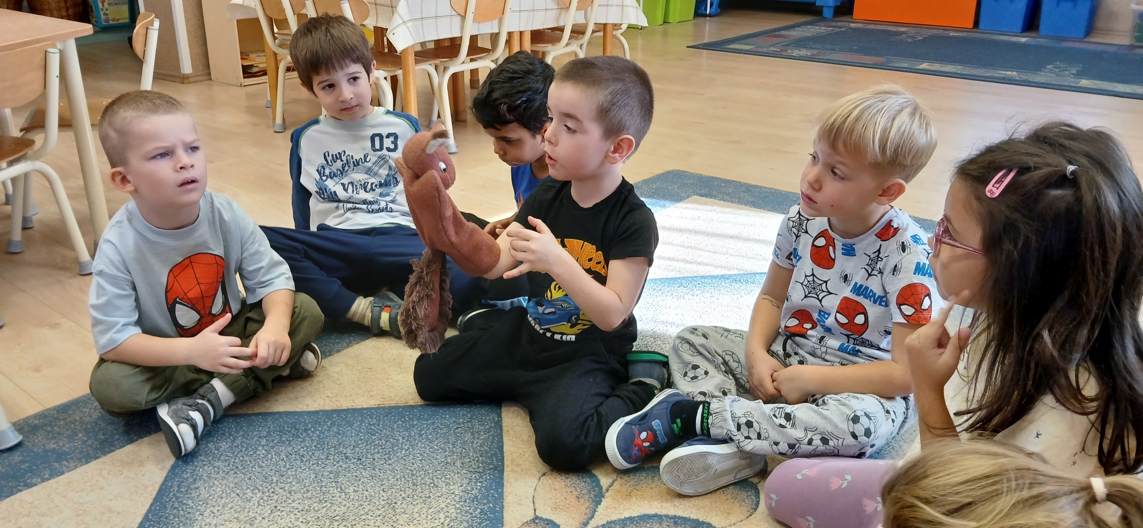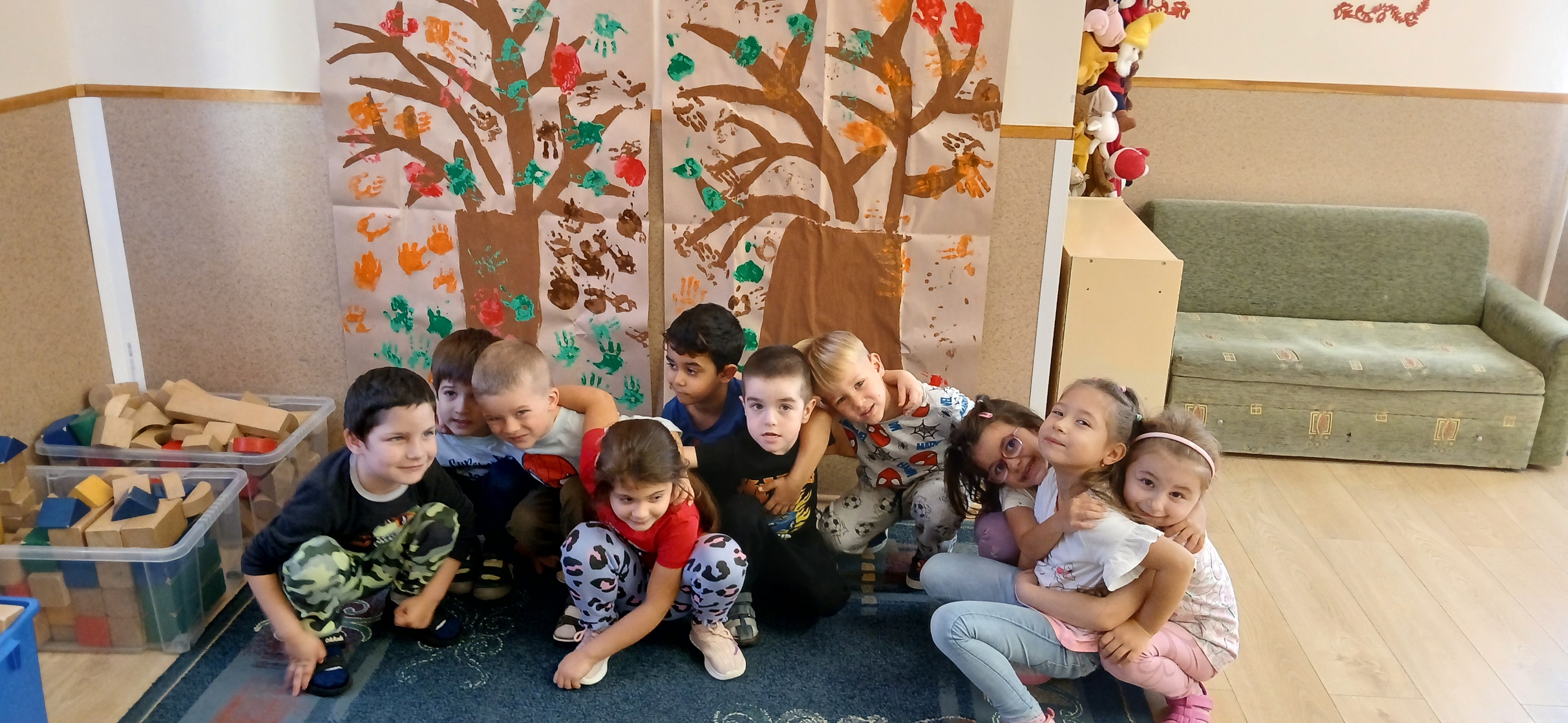 Szeptemberben újra megkezdtük a boldogság programot a Katica csoportban. A boldogságfokozó hála gyakorlása volt a téma. Nagy szeretettel fogadtuk új kiscsoportos gyermekeinket és hálát adtunk, hogy újra együtt lehetünk. Bagdy Emőke: „napimádás” relaxációs gyakorlatával kezdtünk. Többször megismételtük a gyakorlatot, mert nagyon tetszett a gyermekeknek, mivel a fújásnak hallható volt a hangja. Beszélgettünk a gyerekekkel arról, hogy szerintük mi a hála; miért/kiért lehetünk hálásak, és arról, hogy milyen jó érzés kapni és adni is a kedves szavakat. Ezt követően egy mókus kesztyűbáb segítségével elmeséltem nekik „A kis mókus hálás napja” c. mesét. A gyermekek nagy figyelemmel hallgatták a mesét és az azt követő kérdésekre nagyon ügyesen válaszoltak. Egy kisfiú, aki középső csoportos, a saját szavaival elmesélte a mesét, ami minden gyermeknek nagyon tetszett. Ezt követően két hálafát készítettünk, mivel egy papírhoz nem sok gyermek fért oda. A gyerekek nagyon élvezték a közös munkát, nagy örömmel festették tenyérnyomattal a színes leveleket. A közös hálafa készítése után kiszínezték a gyermekek a hálát jelző virágot, majd a gyermekek rárajzolták annak a társuknak a jelét, akinek oda adták. Köralakítást követően a gyerekek egy labdát adtak társuknak és akinél a labda volt, elmondta, hogy miért hálás. A tevékenységet Bagdi Bella: Boldog vagyok c. dalának meghallgatásával zártuk. A gyerekek önfeledten táncoltak, ugráltak, megmutatták mennyire boldogok. A foglalkozás középpontjában a hála érzésének megélése és kifejezése állt, amely az egész tevékenységet áthatotta. A beszélgetőkör, a dalok megalapozták a pozitív érzelmi légkört, a gyerekek felszabadultan, mosolygósan vettek részt, örömmel kapcsolódtak be a tevékenységekbe.