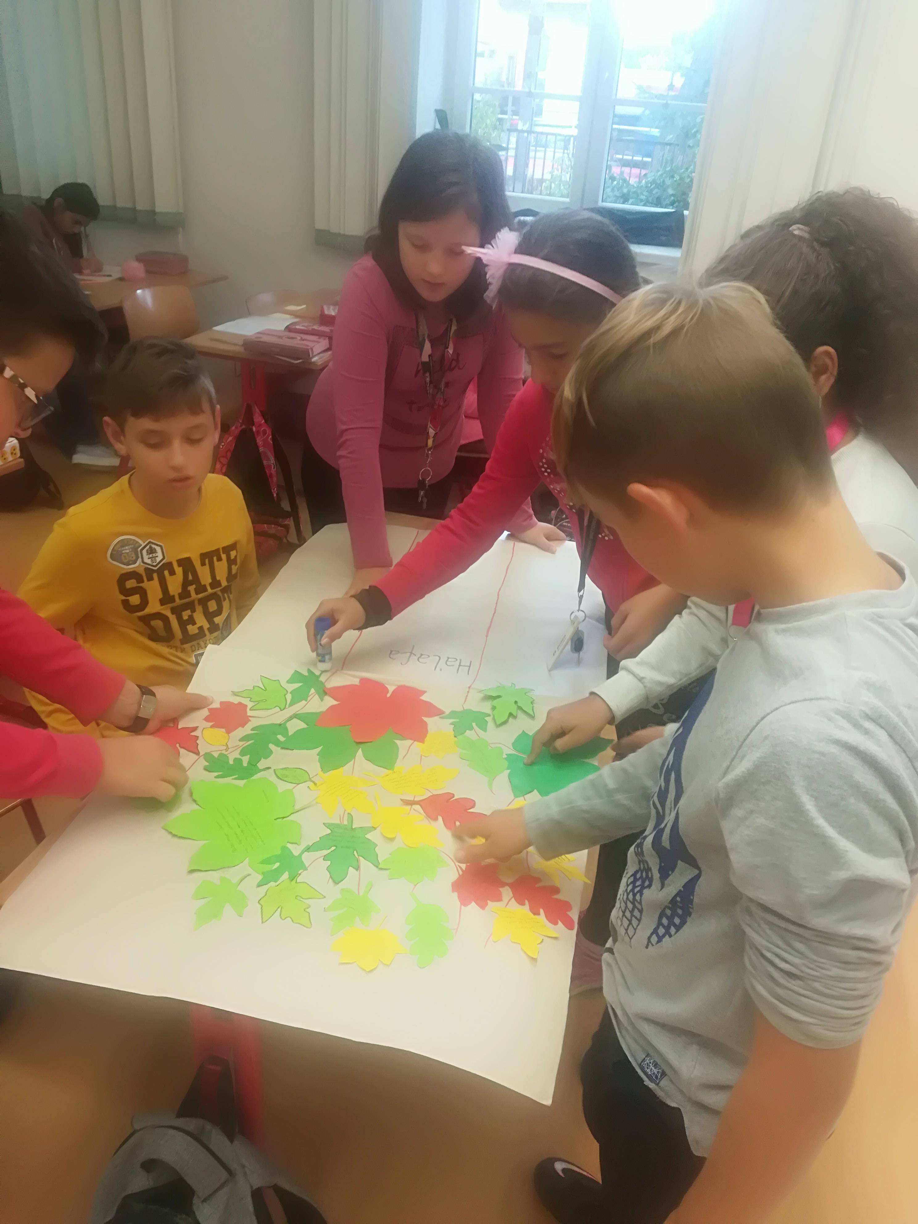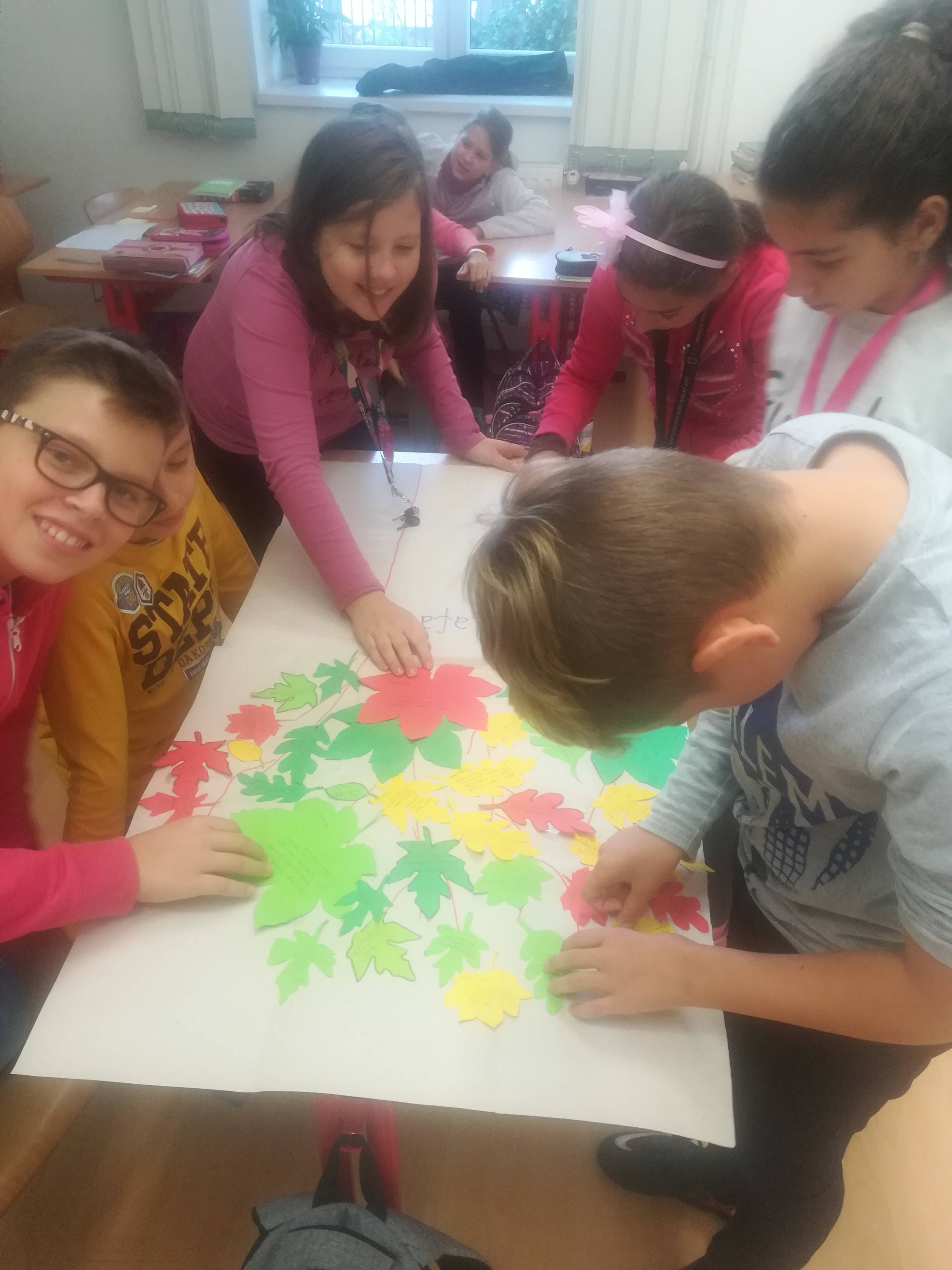 Minden tanuló kapott néhány percet a maga csendességében, hogy átgondolja, kinek, miért lehet hálás, a nagy dolgoktól az egészen apró, értékes dolgokig, majd a háláról szóló zene hallgatása közben „hálafát” készítettünk közösen, amelyen mind elhelyeztünk több (merthogy mindannyiunknak sok mindent van mit megköszönni és hálásnak lenni) falevelet a gondolatainkkal.
