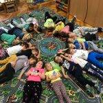 • Elhelyeztük a szőnyegen a színes hálakendőket, melyre minden gyermek ráfekhetett. Becsukták a szemeiket, majd arra gondoltak, kinek hálásak a leginkább a sok szeretetért, kedvességért!