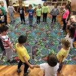 • Elhelyeztük a szőnyegen a színes hálakendőket, melyre minden gyermek ráfekhetett. Becsukták a szemeiket, majd arra gondoltak, kinek hálásak a leginkább a sok szeretetért, kedvességért!