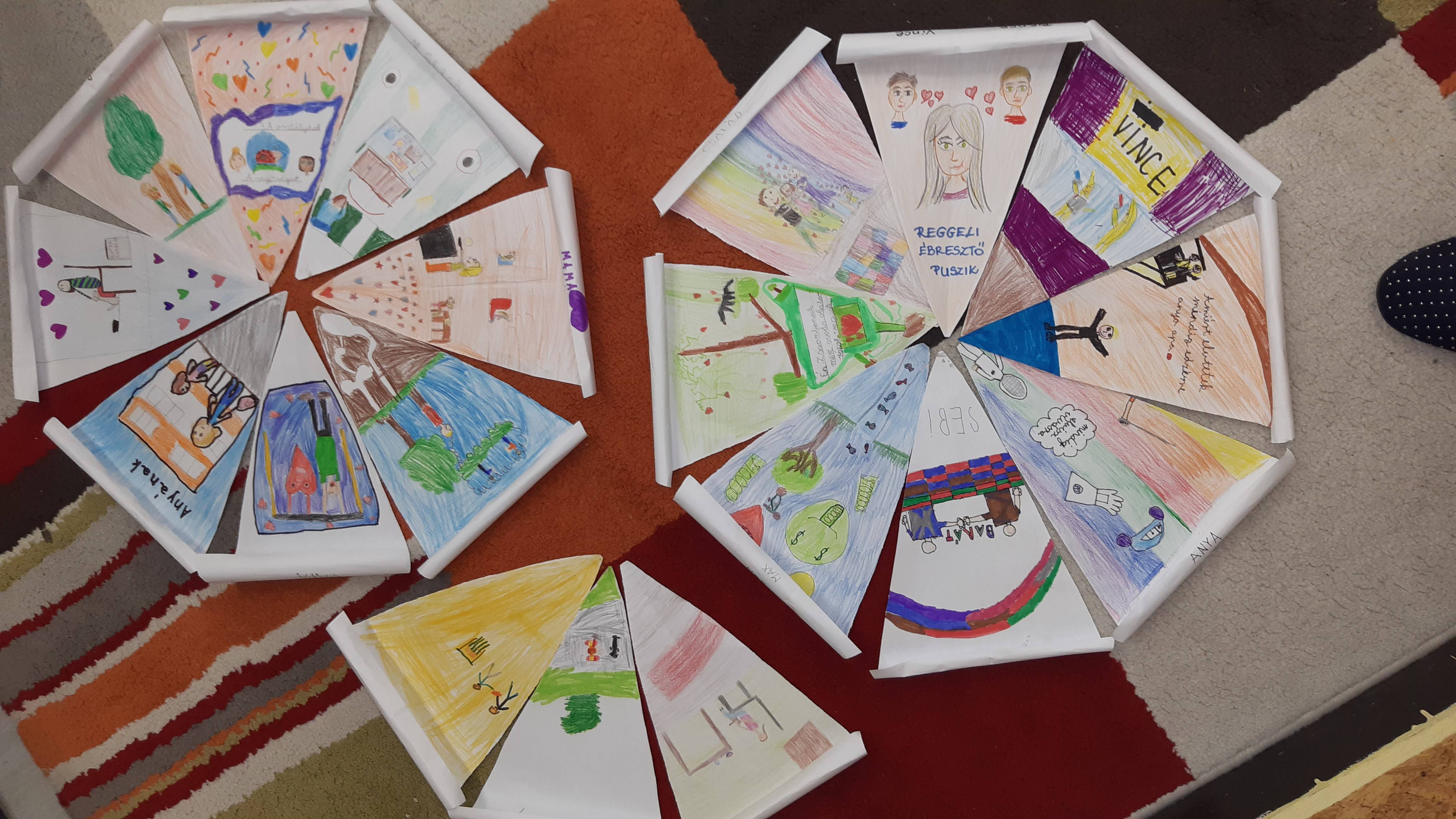 Második éve van az osztály életében a „boldogságóra”. A gyerekek szeretik, várják, minden hónapban több alkalommal foglalkozunk az adott témával. Az idei tanév első témája a hála volt, amire egy hála pizzát készítettünk. Mindenki annak csinált egy pizza szeletet, akivel szívesen elfogyadztaná. Sőt, amikor kedvük tartja, bármikor vehetnek is belőle egy szeletet.