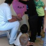 Minden gyermeknek van egy saját köre fehér szívecskével a közepén. A beszélgetés és zene meghallgatása után lehetőséget adunk minden gyereknek, hogy piros szívecskét ajándékozzon annak, akinek valamiért hálás a csoportban.
