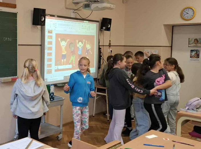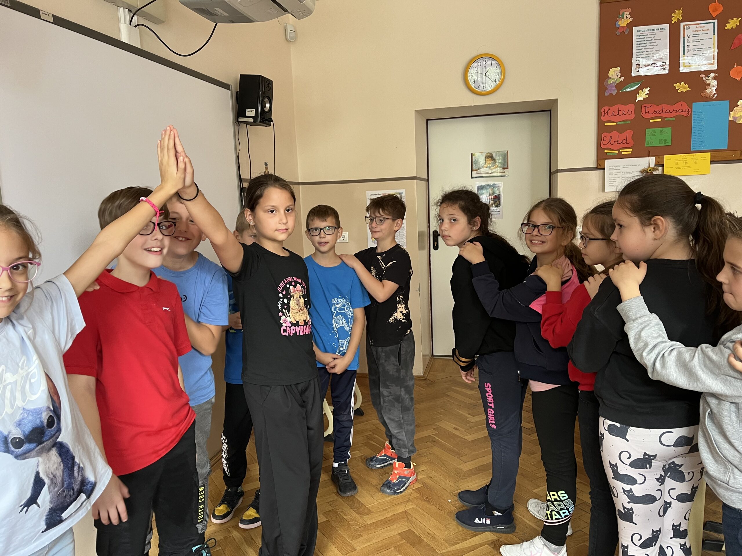Most szeptemberben 4. tanévben kezdtük meg az osztállyal a Boldogság órákat. Ismerős téma már a HÁLA, gyakran ülünk fel a hálavonatra, és az alagúton áthaladva idézünk meg egy-egy számunkra kedves eseményt, vagy segítőt. A nyugilégzés kártyák közül az ujj légzést választották a gyerekek, majd párokban masszíroztuk egymás hátát. A Boldogságfitnesz nem maradhat ki egyetlen óránkból sem. Ebben a tanévben a Boldogság gyöngysorára fűzzük fel a gyöngyeinket, elsőként a HÁLA gyöngyszemét. Mese a háláról és a szeretetről című történetből megtanultuk, hogy a hála szebbé teszi a mindennapokat, mindig kéznél van, és a legkönnyebb vele pozitív érzelmet generálni. Ahol a Hála van, ott Szeretet van, ott megtalálható a Jólét és a Siker is! Az Érzelmek szótára és a Mit érzel? interaktív játékok segítettek a gyerekeknek érzelmeiket felismerni, beazonosítani. Az Itt a láda, mi van benne játékban egymásnak adogatva a ládát, a benne lévő kérdéskártyák segítségével beszélgettünk a háláról, elképzeltük állatként, növényként, szín és hangként. Összegyűjtöttük, hogyan tudjuk kimutatni mások felé.