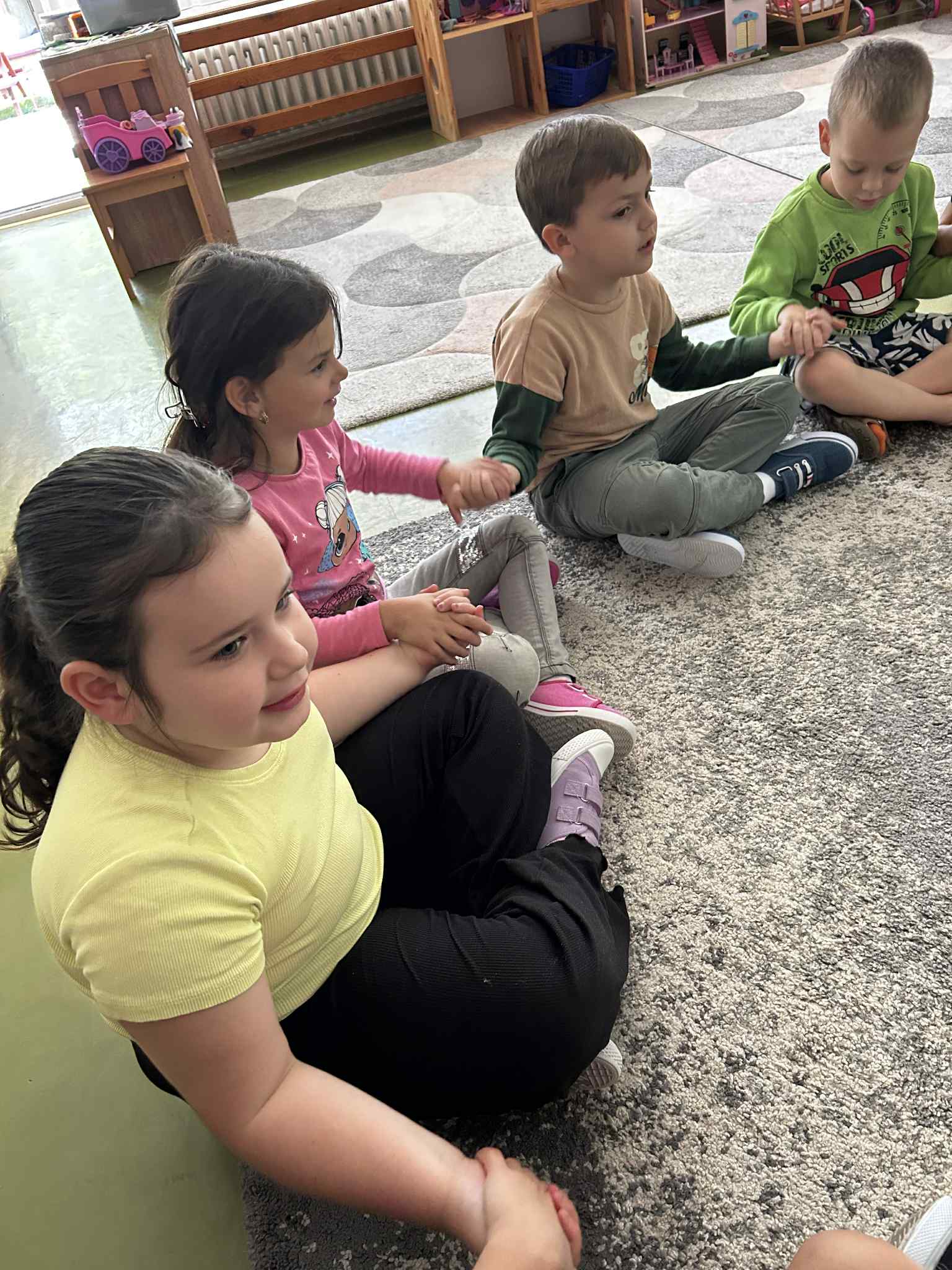 Minden boldogórát relaxációs gyakorlatokkal indítunk. Aztán a csoport által megszokott saját köszöntéssel folytatjuk, egymás kezét megfogva: Örülök,hogy itt vagy kezdőthet egy jó nap,köszöntelek téged cselekedjünk szépet!
