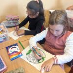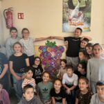 Ezután közös alkotás következett, egy Hála-fal, a mi esetünkben egy „Hála szőlőfürt” készítése. Mindenki választott egy mandalát, melyet filccel szépen kiszínezett és egy nagy szőlőfürtöt alakítottunk belőle. Minden egyes szőlőszem hátuljára egy szót írtak fel, amiről a hála jut eszükbe (pl. anya, játék, Fortnite, nyári emlékek, kiskutyám…)így fűztünk belőle egy közös „Hála szőlőfürtöt”.