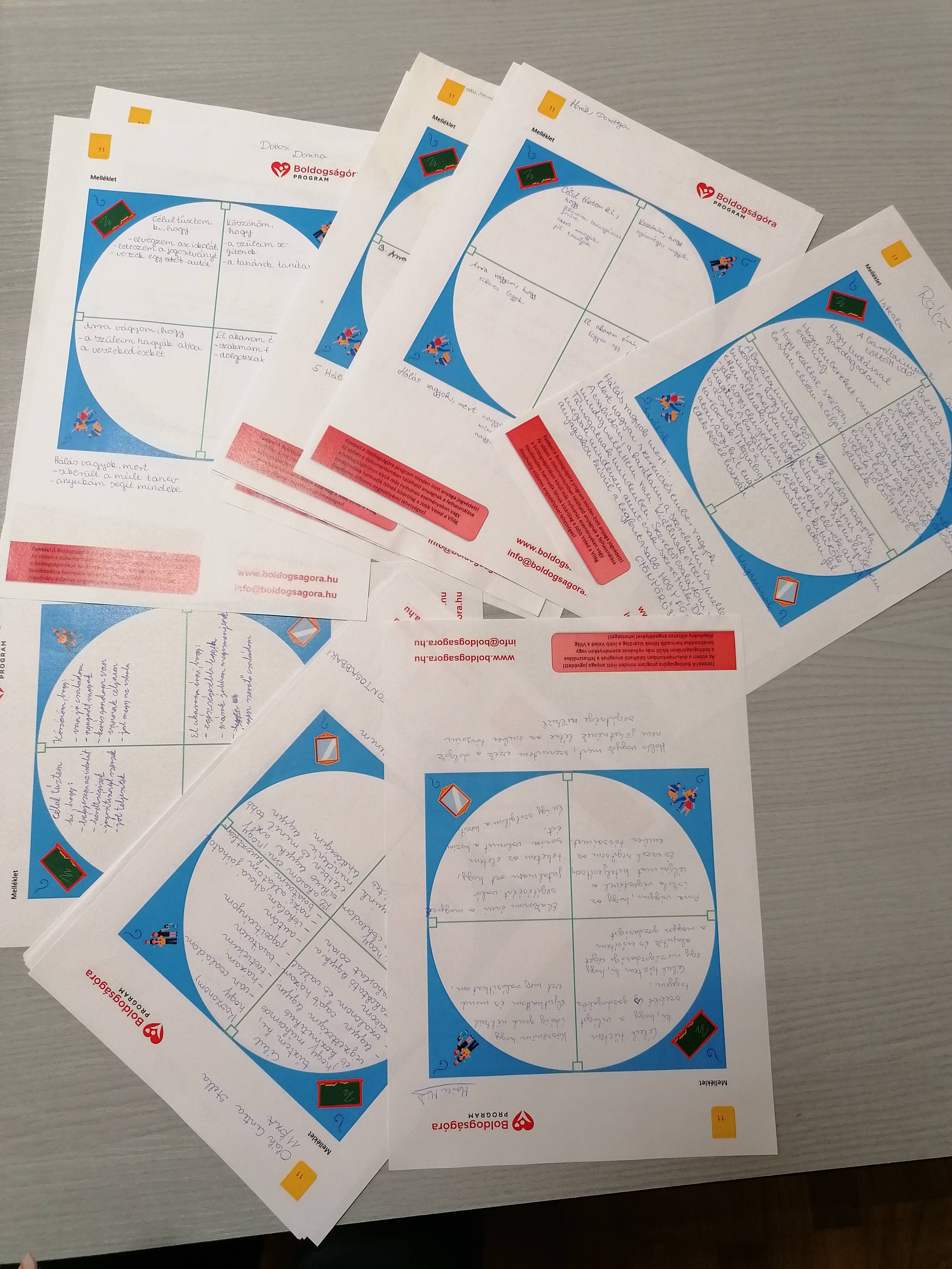 A foglalkozáson részt vevő osztály 17-18 éves diákokból áll. Én vagyok az osztályfőnöke és a magyartanára is az osztálynak, így könnyen ment a beszélgetés a gyerekekkel. Megbeszéltük kinek mit jelent a hála, szituációkhoz, emlékekhez kötöttük a fogalmat. Ezek után a boldogságról beszélgettünk, egyéni és közösségi szinten is igyekeztünk körüljárni a fogalmat. A foglalkozás nagyon jó hangulatban telt, mindannyian jól éreztük magunkat.