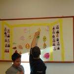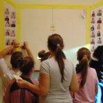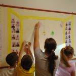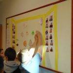 A gyerekek ötlete alapján az ablakkeretbe a saját fényképüket tűzték, az ablakba pedig a hála-szavukat az évszakhoz kapcsolódóan saját készítésű falevelekre írva.