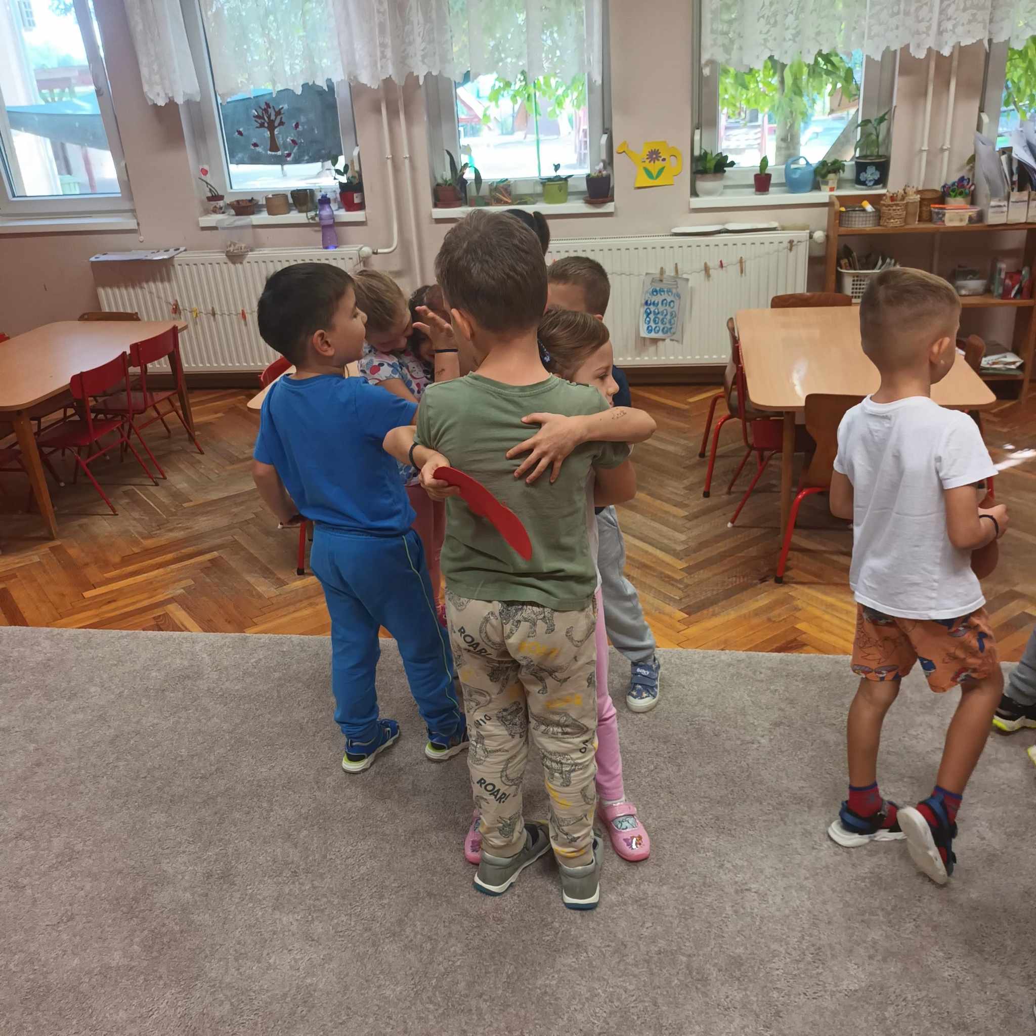 Óvodánkat már hétfő reggel a hála járta át: a kis szorgos kezek egymás után gyártották a hálaalmájukat a csoportunkban kopaszon álló hálafánkra. Valaki rajzzal díszítette, valaki az óvónő fülébe súgta, titkon miért is hálás. Mindegyik ott ékeskedik most a csoport immár roskadásig teli hálafáján. Az ötletet az előző héten feldolgozott mesénk (Szutyejev: Az alma) ihlette, így a nap elején átvettük ismét a mese elemeit, és megbeszéltük, mi is az a hála, miért/ hogyan lehetünk hálásak, illetve a mesében is hogyan jelent meg ez az érzés. A mi csoportunk nem csak szavakkal és rajzokkal fejezték ki hálájukat, hanem cselekedettel is, ugyanis egy Veronika zeneprojektben ismert dalra minden lepotyogott őszi gyümölcsnek meg kellett keresnie a párját, és a hála jegyében megölelni, puszit adni, integetni, pacsizni lehetett az ismét meglelt párjával.