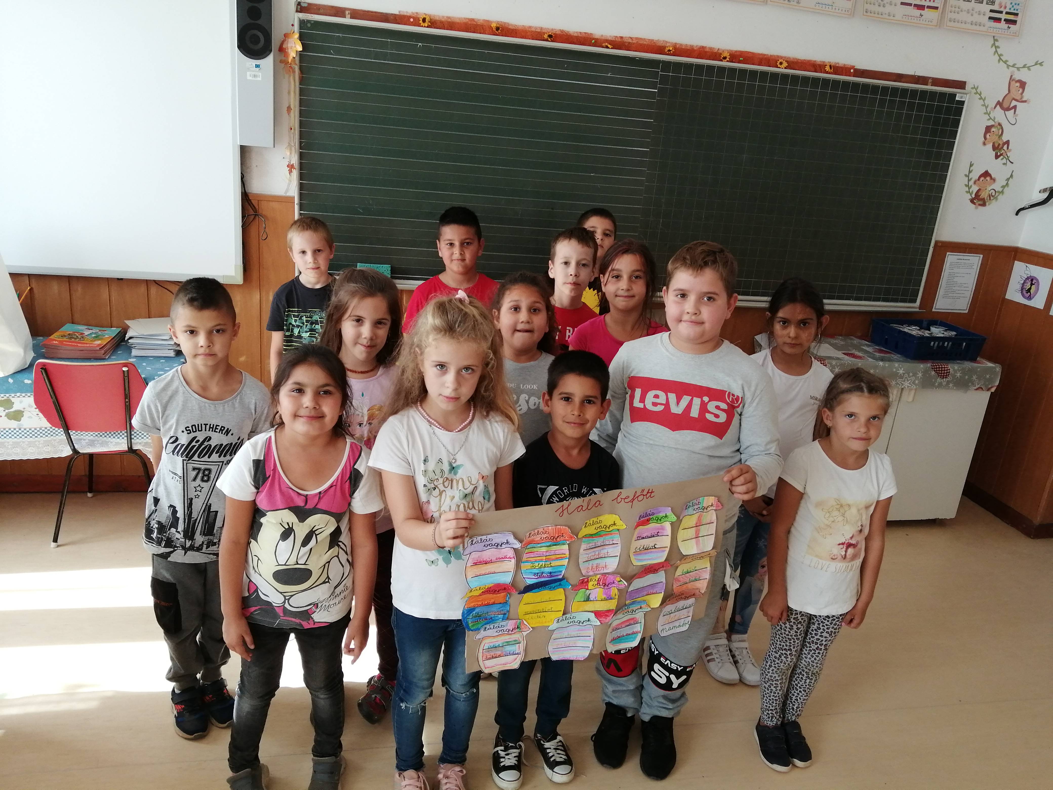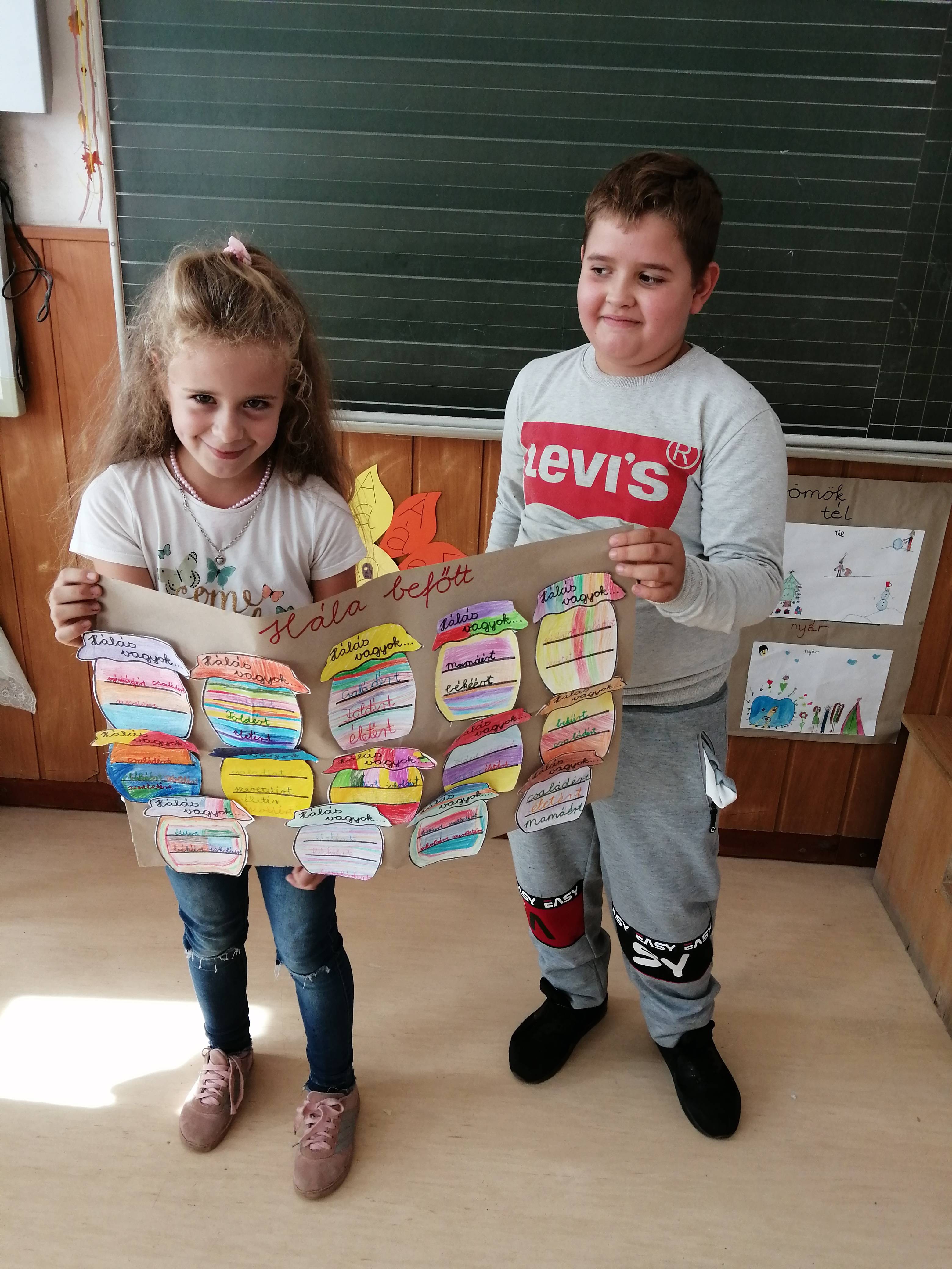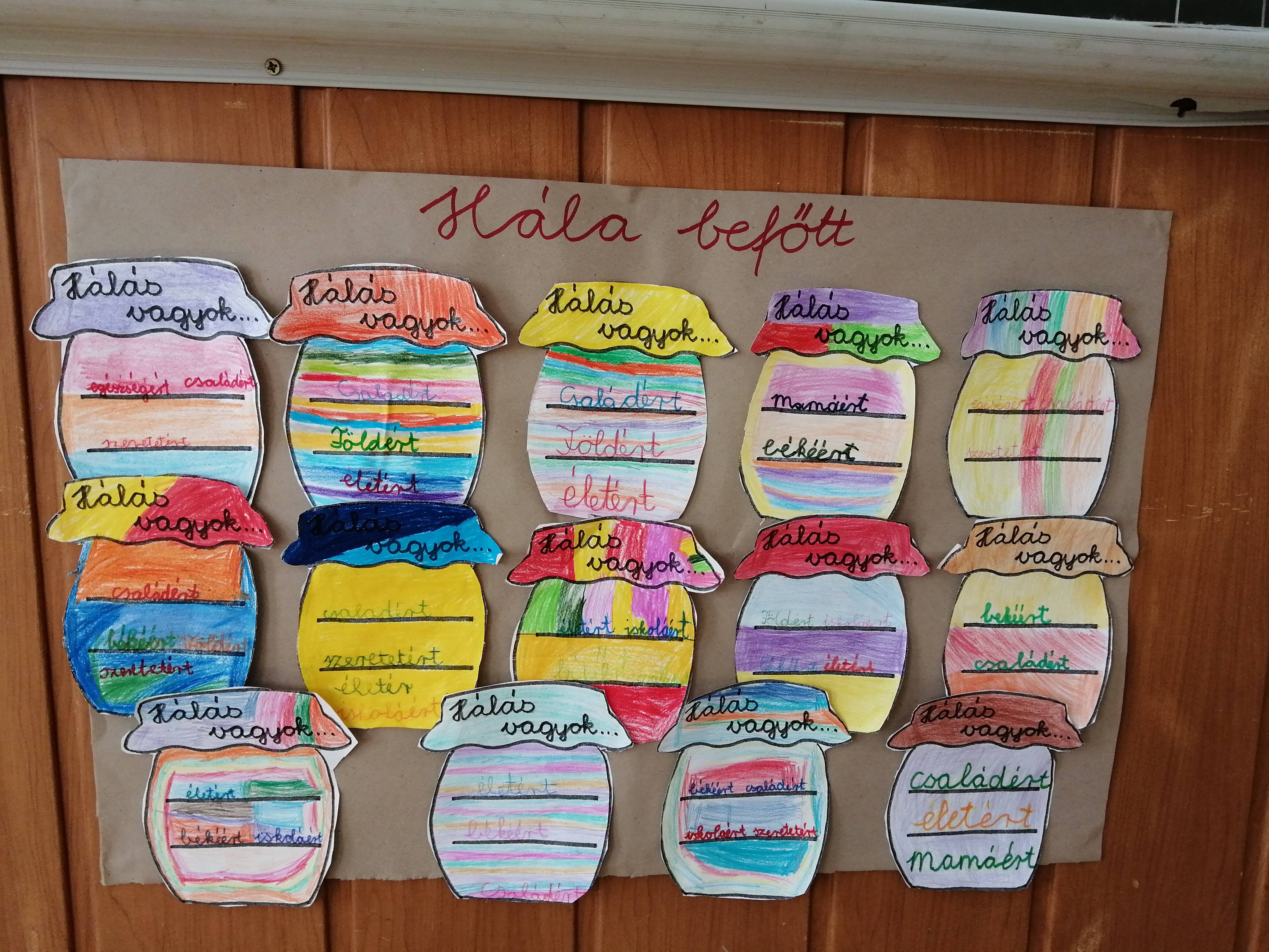 A másodikosaimmal hálabefőttet készítettünk papírból. Óra elején összegyűjtöttük, miért is lehetünk hálásak,majd a kapott papírbefőttre mindenki ráírta a maga háláját. A végén kiszínezhették, minél színesebbre.