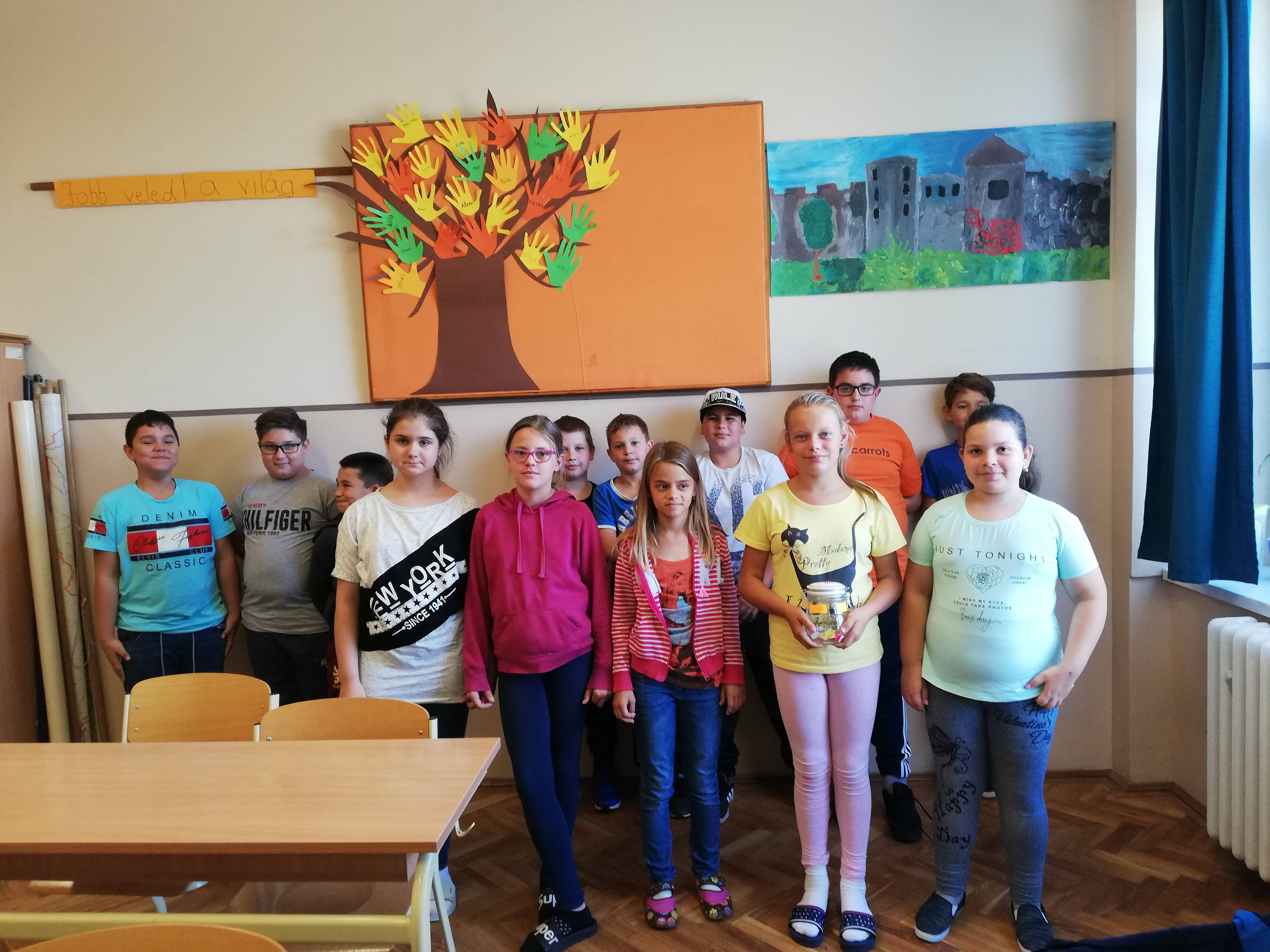 A kis osztályommal ettől a tanévtől csatlakoztunk a programhoz. A tanév elején kijelöltünk egy Jobb veled a világ falat, ahová a Boldogság órákon készített munkák fognak kerülni. A Boldogság várunk is elkészült, ahová a tanév végén, az összes boldogságfokozó téma megismerése után léphetünk be. A hála témakörben Hálabefőttet készítettük. A befőttbe folyamatosan kerülhetnek érzések, gondolatok. A téli szünet előtt fogjuk kinyitni és felolvassuk, hogy ki, miért volt hálás az első félévben.