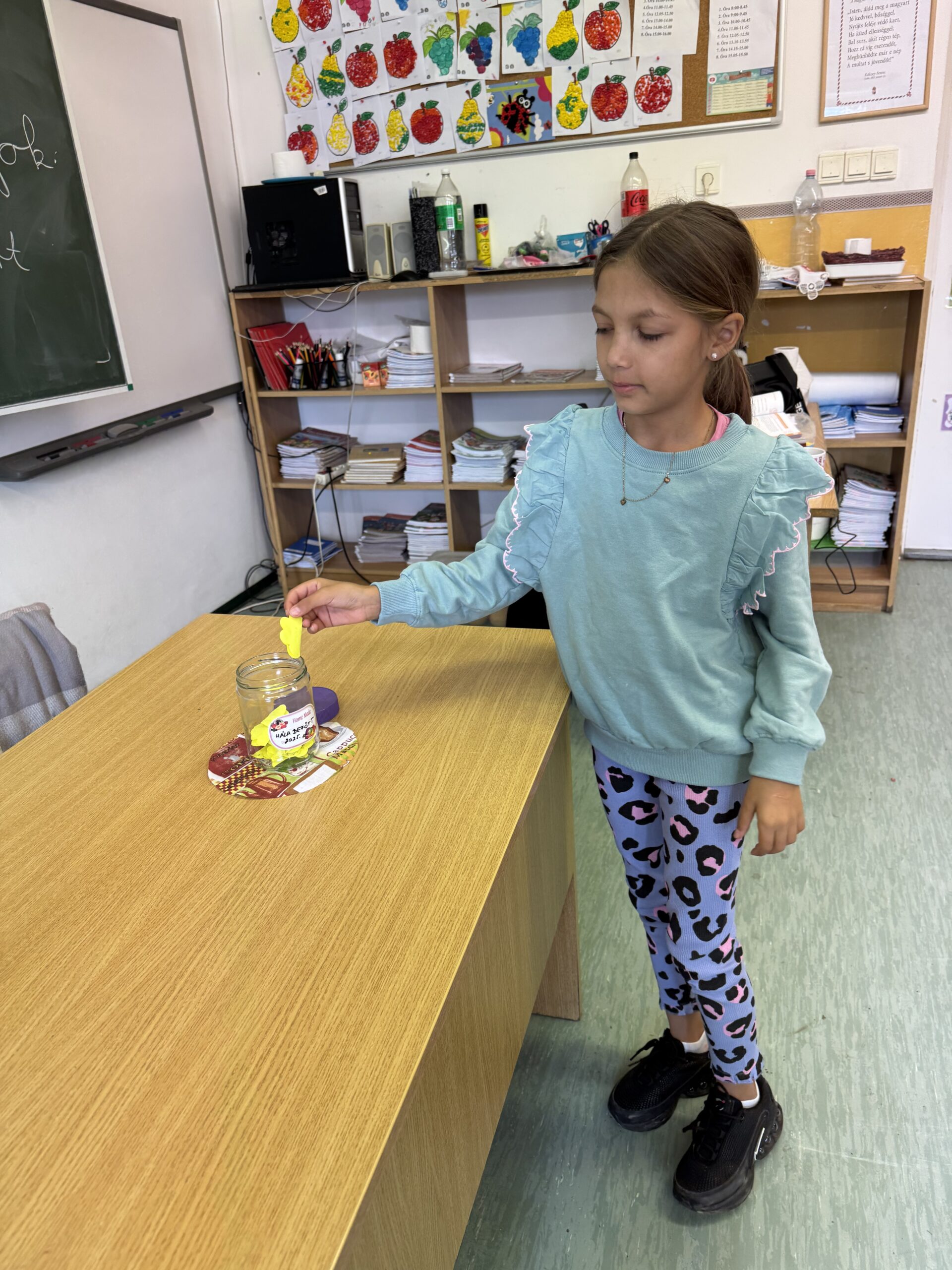 Az osztályommal először csináltunk boldog órát. A foglalkozás elején elolvastam nekik egy mesét a háláról, majd közösen megbeszéltük, hogy miért is lehetünk lehetnek ők hálásak. A gondolataikat egy befőttes üvegben őrizzük meg.