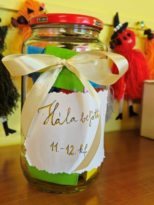Ezek után elővettük az előző hálabefőttünket és elolvastuk, hogy akkor miért voltunk hálásak. Jó volt látni a diákok örömét, a hálabefőttünk ebben a hónapban is gazdagabb lett s nem csak a befőttünk, hanem a lelkünk is 🙂