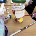 A hála téma tovább gondolása céljából hála befőttet készítettünk, amire a gyerekek csillagokat ragasztottak és arra azt írták fel, amiért maguknak hálásak lehetnek. A hálabefőttet mindenki tetszés szerint díszítette.