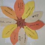 + hálavirág – Amiért hálás vagyok. ( csoportunk neve, jele: napvirág, napraforgó virág, ennek szirmaiba írták amiért hálásak )