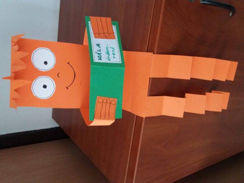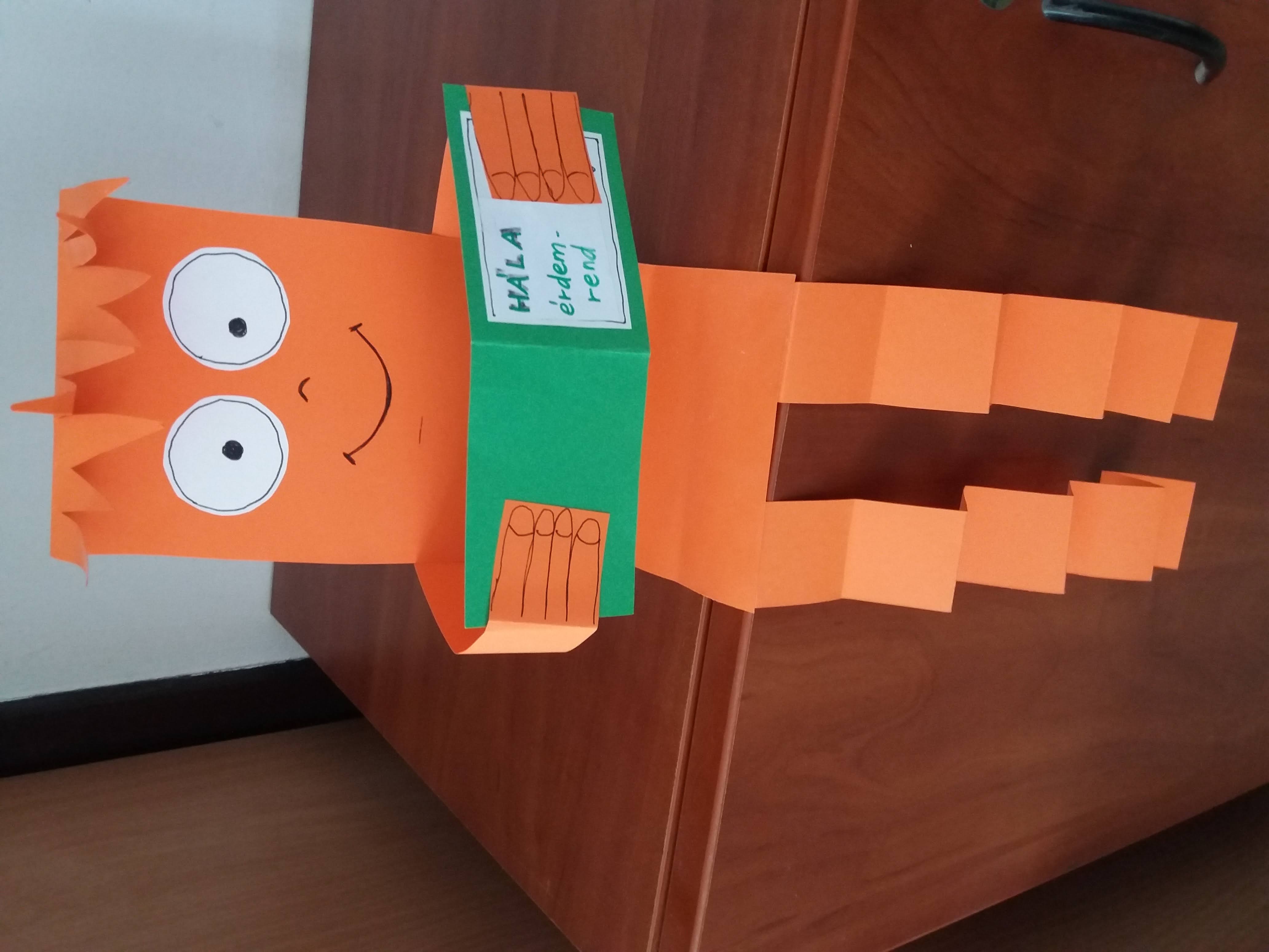 Polcra ültethető Hála Manó – hálaérdemrend papírból készítve.