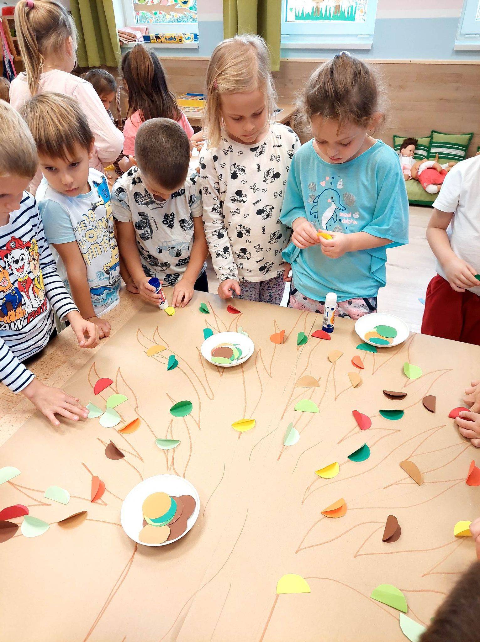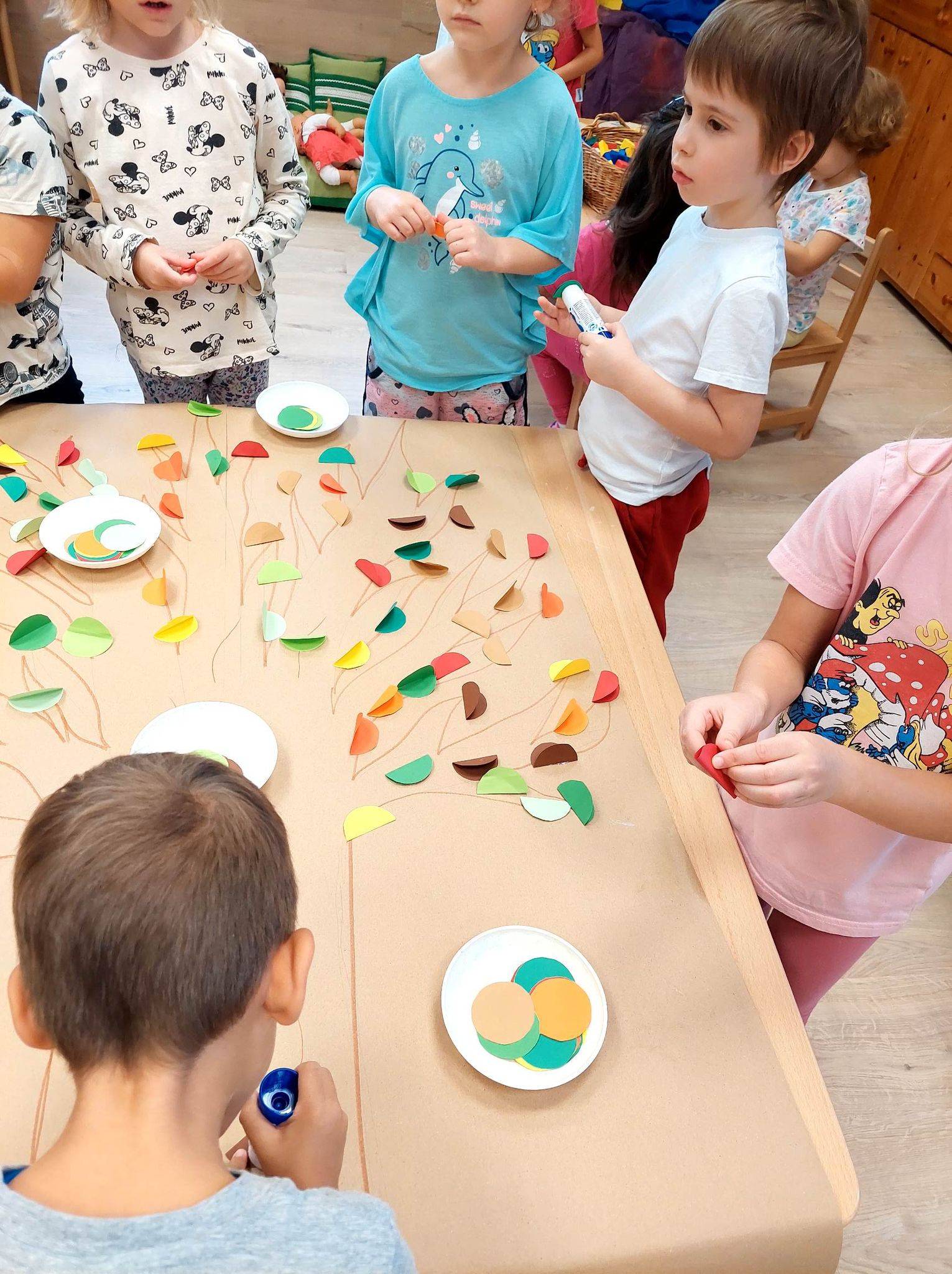 Miután a gyerekekek meghallgatták egymást, közösen egy hála fát készítettünk, amire az ősz színeiből ragasztottak faleveleket, mindenki annyi levelet tehetett, amennyit csak szeretett volna.