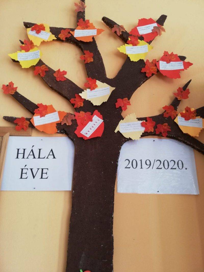 Minden tanulónk megfogalmazta miért lehet hálás. Ezeket a gondolatokat tettük a hálafára.