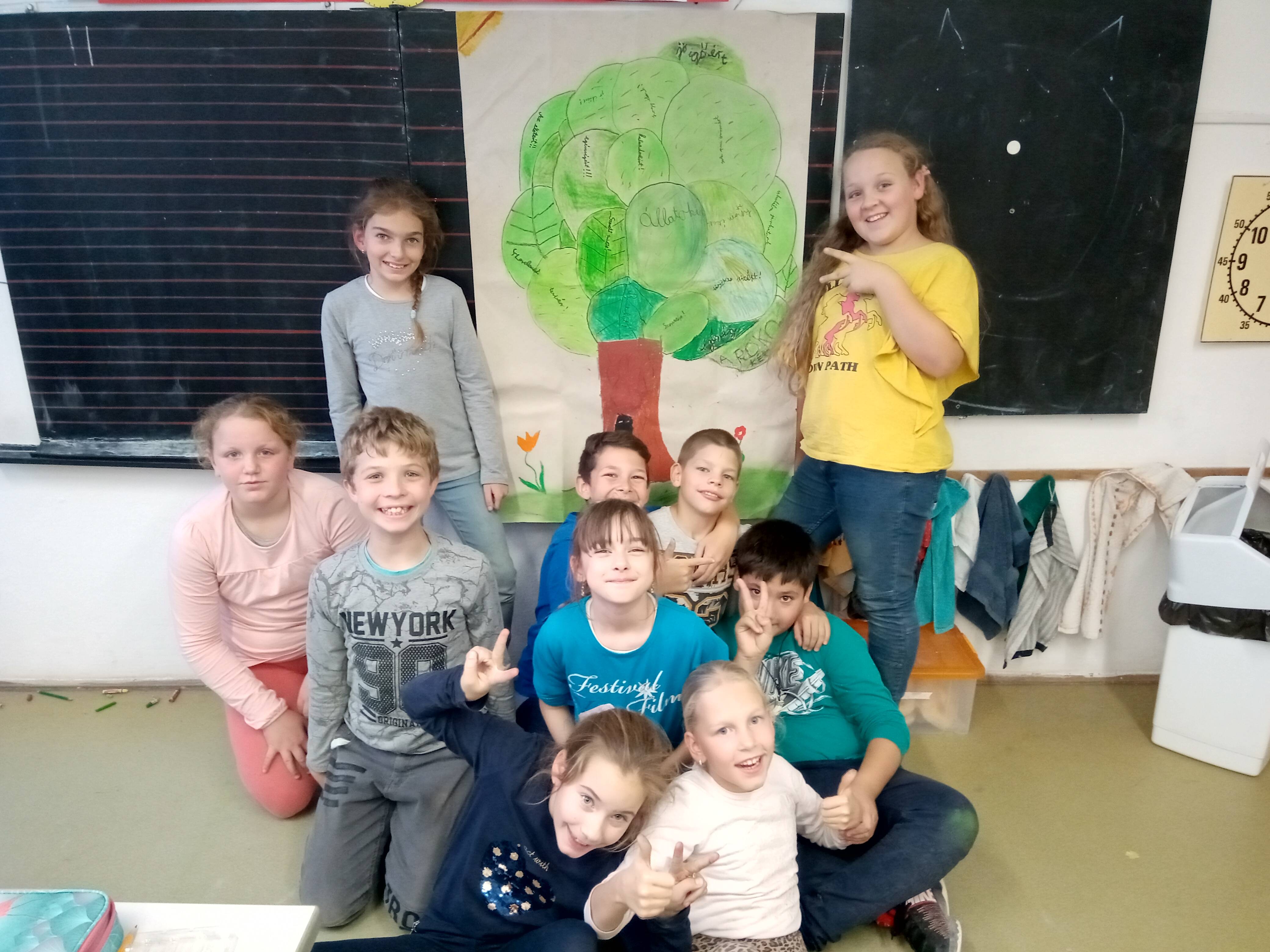 Szeptember hónapban „Hálafát” készítettünk a gyerekekkel. Most úgy közelítettük meg a témát, hogy mit köszönhetünk az életnek, annak hogy létezünk, melyek azok a dolgok, melyeket megélhetünk, átélhetünk.