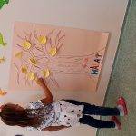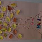 Előrerajzolt fa kontúrjait átrajzolták a gyerekek és saját kedvükre díszítették. Levelekre írtak 1-1 szót, amiért hálásak, majd ezeket egyesével felragsztották a fára.