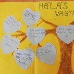 A tanóra elején meghallgattuk a hála dalt. Ezután elbeszélgettünk a 7.A osztályos tanulókkal arról, hogy mi is az a hála. Végül közösen hálafát készítettek, aminek a szív alakú leveleibe beleírták, ők miért hálásak az életben. A tanulók leggyakrabban a családjukért, a szülőkért, az egészségükért, az otthonukért, a tiszta levegőért, a tiszta vízért, a mindennapi ételért, a tanulási lehetőségért és az iskoláért hálásak… de volt olyan is, aki a wifit írta fel a falevélre. Nagyon tanulságos és meghitt perceket éltek át a gyerekek a hálafa készítése közben.