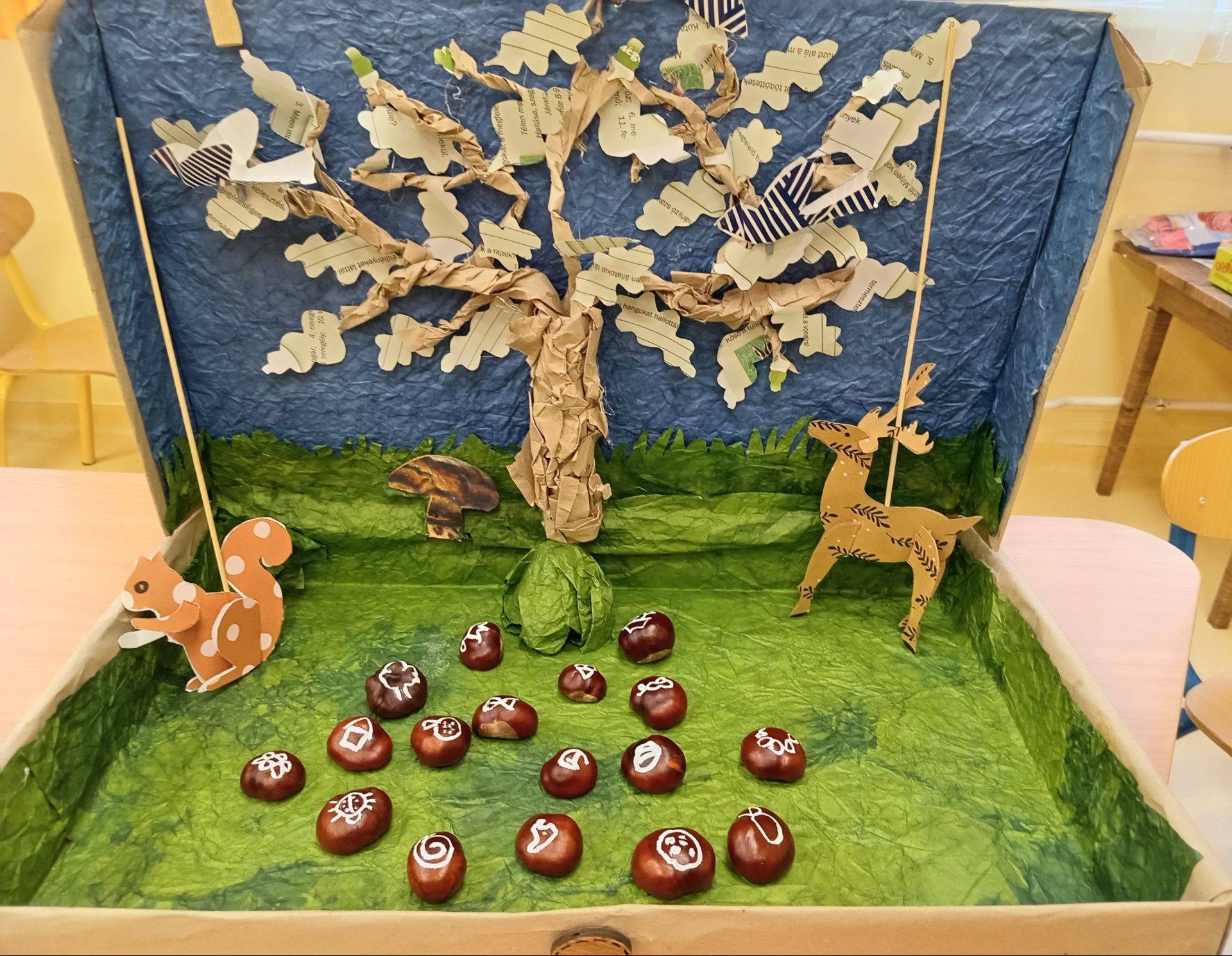 Egész hónapban oda figyeltünk arra, hogy miért lehetünk hálásak. Pókháló játékot játszva, a gyerekek elmondták, kinek milyen jó tulajdonsága van, majd meghallgatták a büszke tölgyfa meséjét, ezt közetően a meséhez készített 3D fára minden nap, minden gyermek rátette a jelét, aki hálásnak érezte magát valamiért, végül a mesében megismert fát, maguk is megfestették.