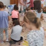 A hét további részében az általunk elkészített kép háttérként szolgált a Hálafa története meséhez, amit bábok segítségével hívtunk életre. A mesében hallott állatoknak elemózsiát is gyűjtöttünk meseerdőnkben, hogy legyen mit elraktározni az odú mélyén. A közös élmények nagyban hozzájárultak az új közösség összekovácsolódásához, az új kicsik beszoktatásához, az örömteli pillanatok megélésében.