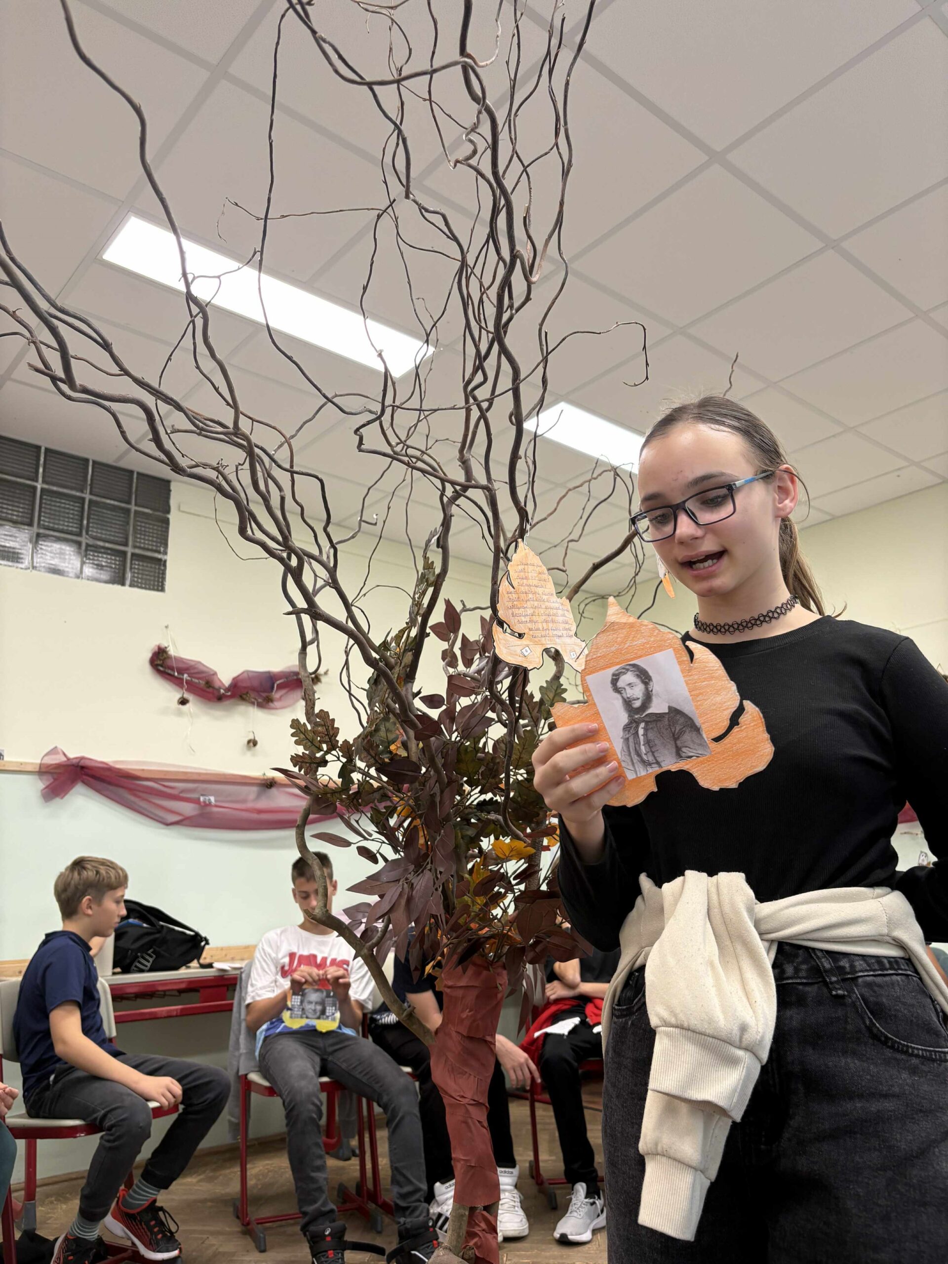 A következő lépésben a tanulók egy-egy olyan történelmi vagy kulturális személyiséget választottak, akiknek munkássága nyomán az emberiség hálát érezhet. A gyerekek az internetes források mellett a ChatGPT mesterséges intelligencia segítségét is igénybe vették a háttérinformációk és rövid vázlatok elkészítéséhez, ezzel fejlesztve digitális kompetenciájukat és kritikai gondolkodásukat.