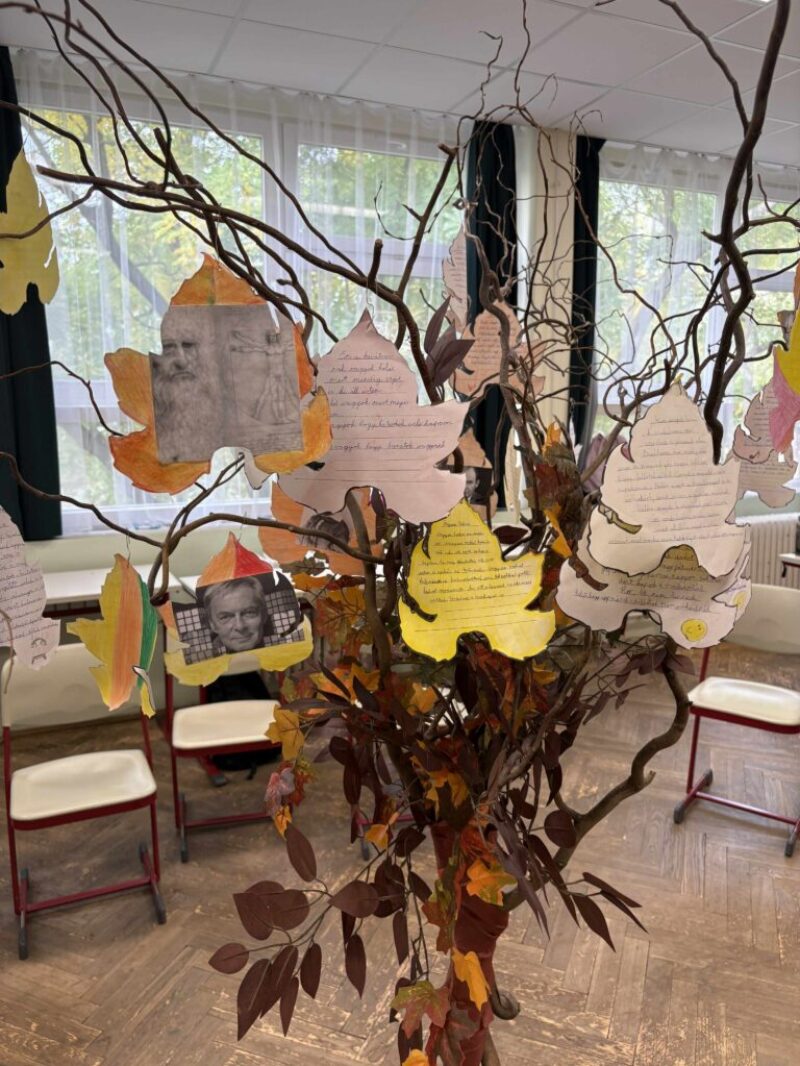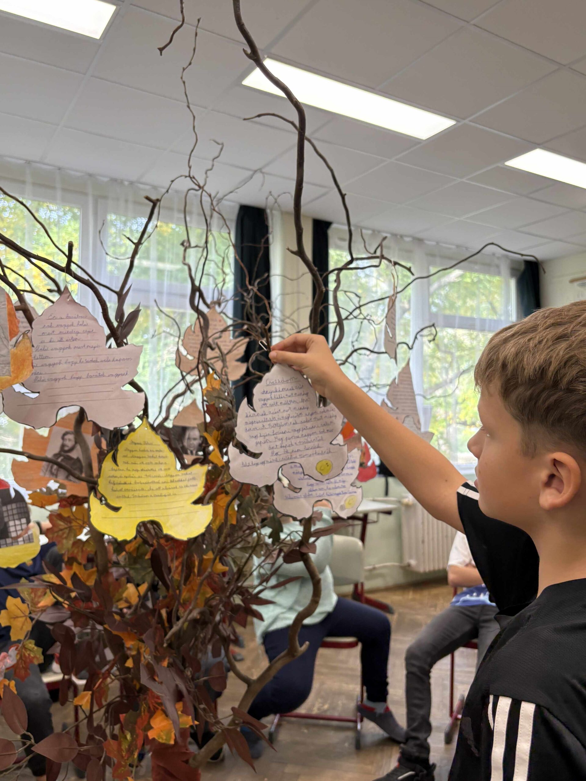 A tanulók hálalevelet írtak választott személyükről, amelyben megfogalmazták, miért lehetünk hálásak neki. Majd elkészítették a levelek vizuális formáját: kiszínezték, kivágták, és az adott személy arcképével díszítették. Ezeket a leveleket is egy közösen készített „Hálafára” rögzítettük, amelynek törzsét és ágait természetes anyagokból alkottuk meg.